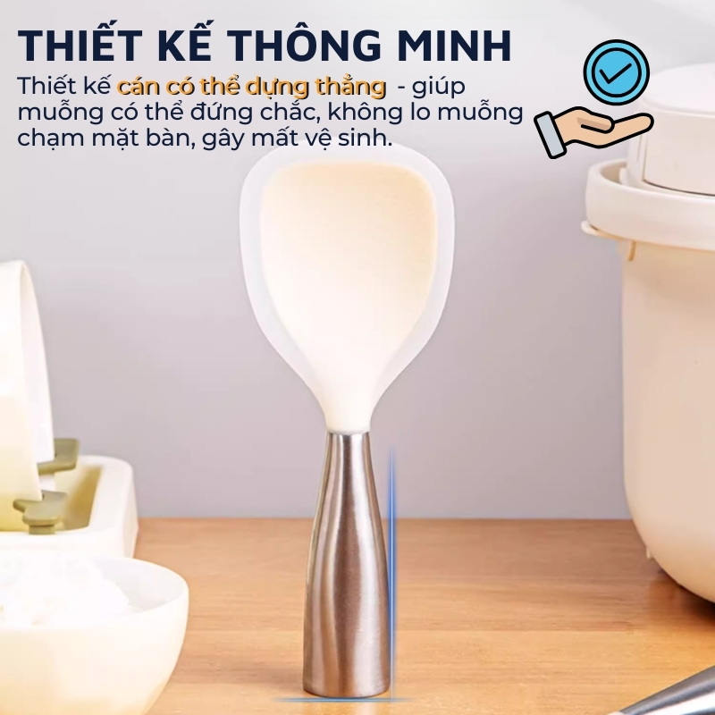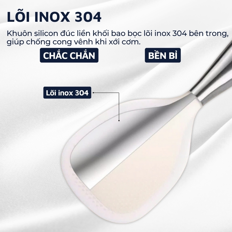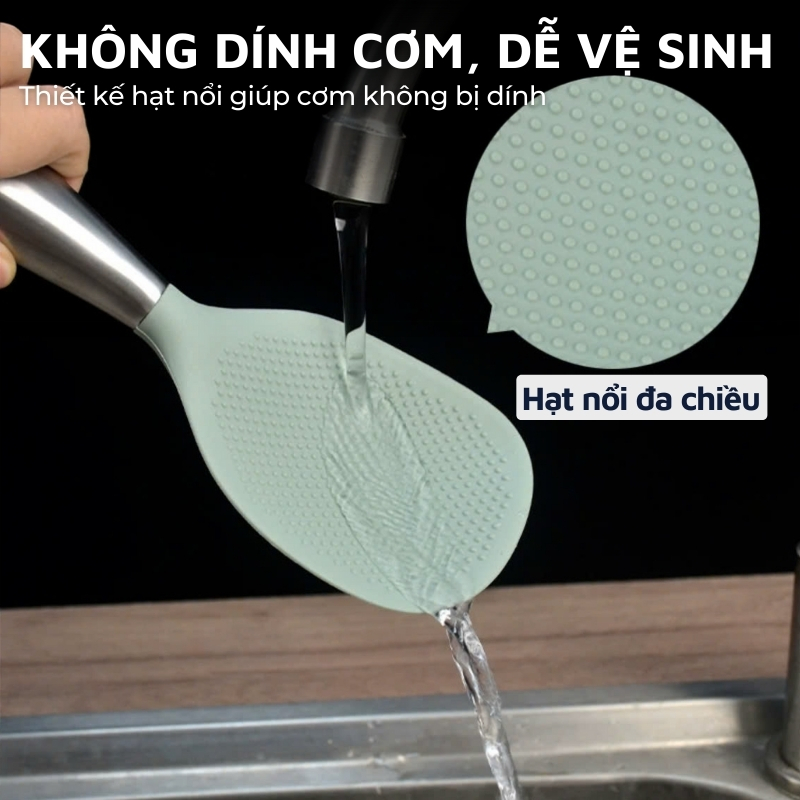Muôi xới cơm chống dính cao cấp bằng inox 304 không gỉ, bền đẹp, chắc chắn