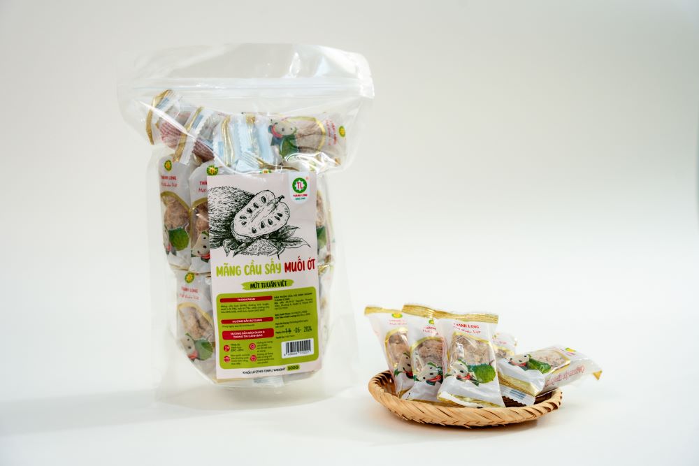 SẢN XUẤT TẠI HỘ KINH DOANH THÀNH LONG ĐỊA CHỈ : 42/19-21 NGUYỄN THƯỢNG HIỀN, PHƯỜNG 5, QUẬN 3, THÀNH PHỐ HỒ CHÍ MINH MÃNG CẦU SẤY MUỐI ỚT MỨT THUẦN VIỆT Thời hạn sử dụng: 06 tháng kể từ ngày sản xuất THÀNH PHẦN : Mãng cầu tươi (80%), đường tinh luyện, muối i-ốt, bột ớt, chất chống oxy hóa (E223), chất bảo quản (E202) SẢN XUẤT THEO : 14/HKDTL/2020 CHỈ TIÊU CHẤT LƯỢNG: Độ ẩm ≤ 35 % HƯỚNG DẪN SỬ DỤNG VÀ BẢO QUẢN: HƯỚNG DẪN SỬ DỤNG : Dùng ngay sau khi mở bao bì. HƯỚNG DẪN BẢO QUẢN : Bảo quản nơi khô ráo, thoáng mát. Tránh ánh nắng trực tiếp. Nhiệt độ thích hợp: 22℃-30℃ THÔNG TIN CẢNH BÁO : Không sử dụng sản phẩm khi đã hết hạn sử dụng. NHÃN HIỆU ĐĂNG KÝ BẢO HỘ ĐỘC QUYỀN 60933 CẤP THEO QĐ Số A1994/QĐ-ĐK, NGÀY :10.03.2005 Giấy chứng nhận ISO 22000:2007/ISO 22000:2005 số 18.2177 – FSMS do Trung tâm Giám định và chứng nhận hợp chuẩn hợp quy - VietCert đánh giá chứng nhận phù hợp tiêu chuẩn