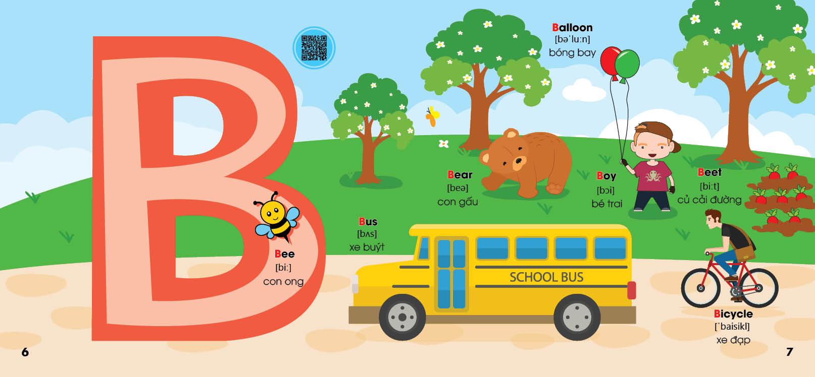 Đây là cuốn sách được tích hợp âm thanh! Mỗi trang sách đều có mã code để đọc. Bé sẽ được nghe từ vựng kết hợp với tiếng kêu, tiếng động của các con vật phát âm chuẩn chắc chắn sẽ vô cùng thích thú.