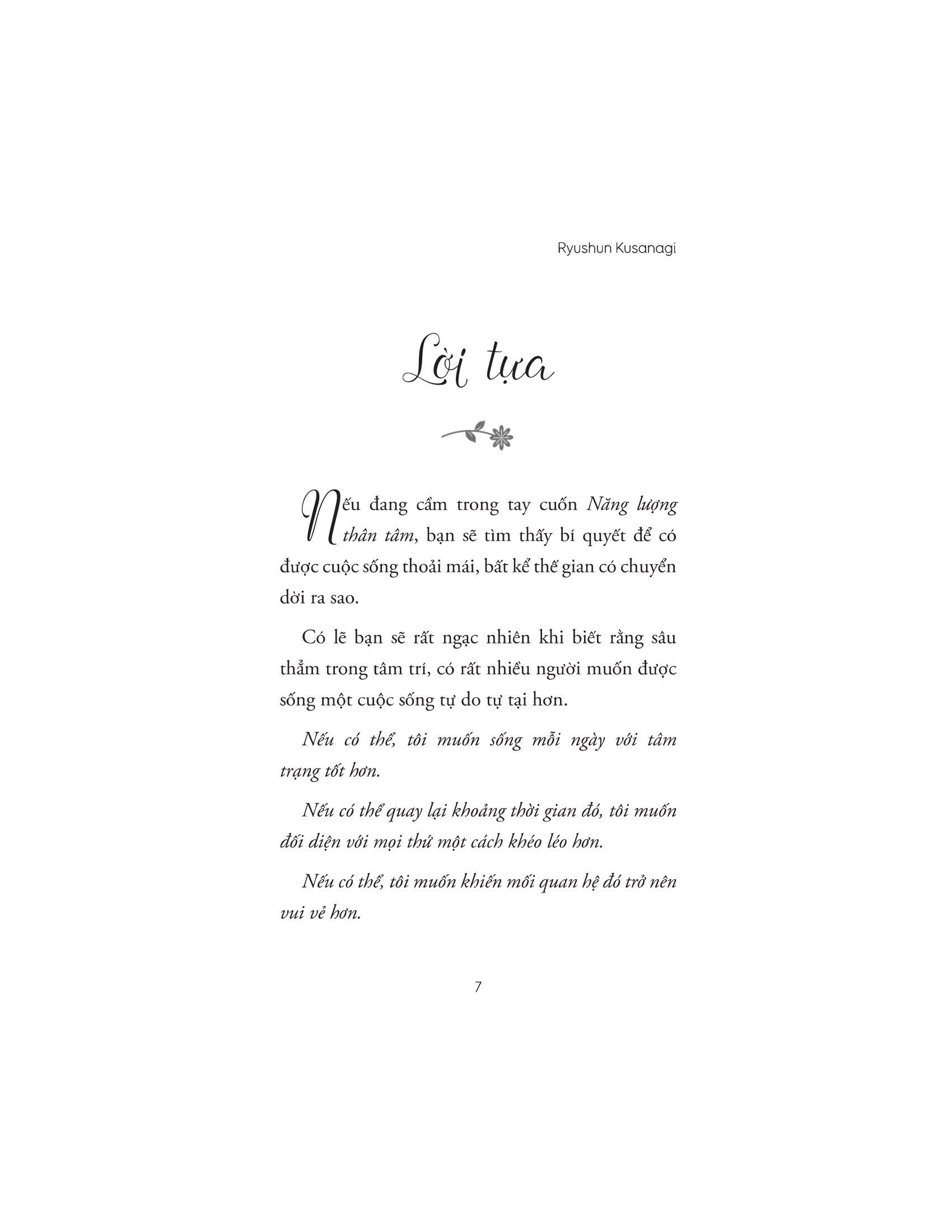 Năng lượng thân tâm đúc kết những phương pháp tu tập chánh niệm của Phật giáo trong suốt 2.500 năm, giúp bạn chữa lành mọi tổn thương trong tâm trí, từ đó có được một cuộc sống thoải mái và tràn đầy năng lượng mỗi ngày. Cuốn sách sẽ chỉ bạn cách: