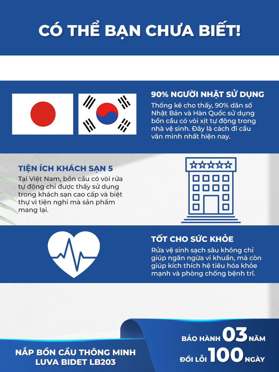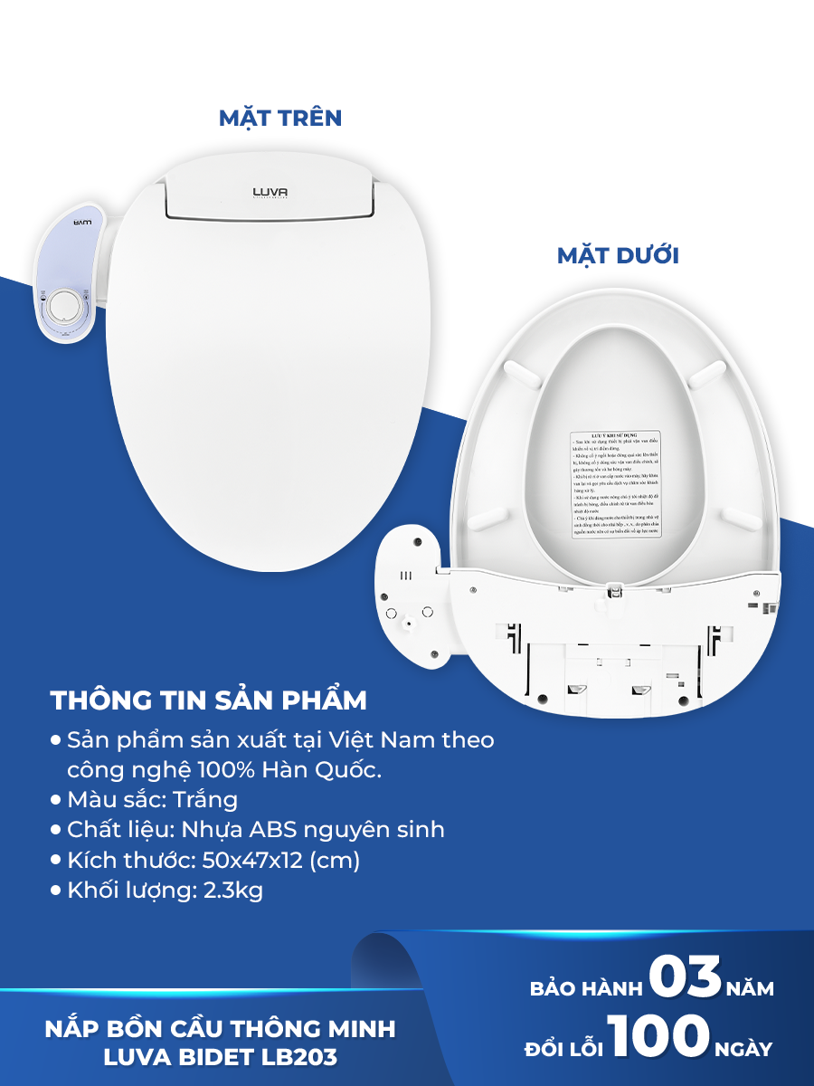 Thông tin sản phẩm: Nắp bồn cầu vệ sinh thông minh LUVA BIDET LB203