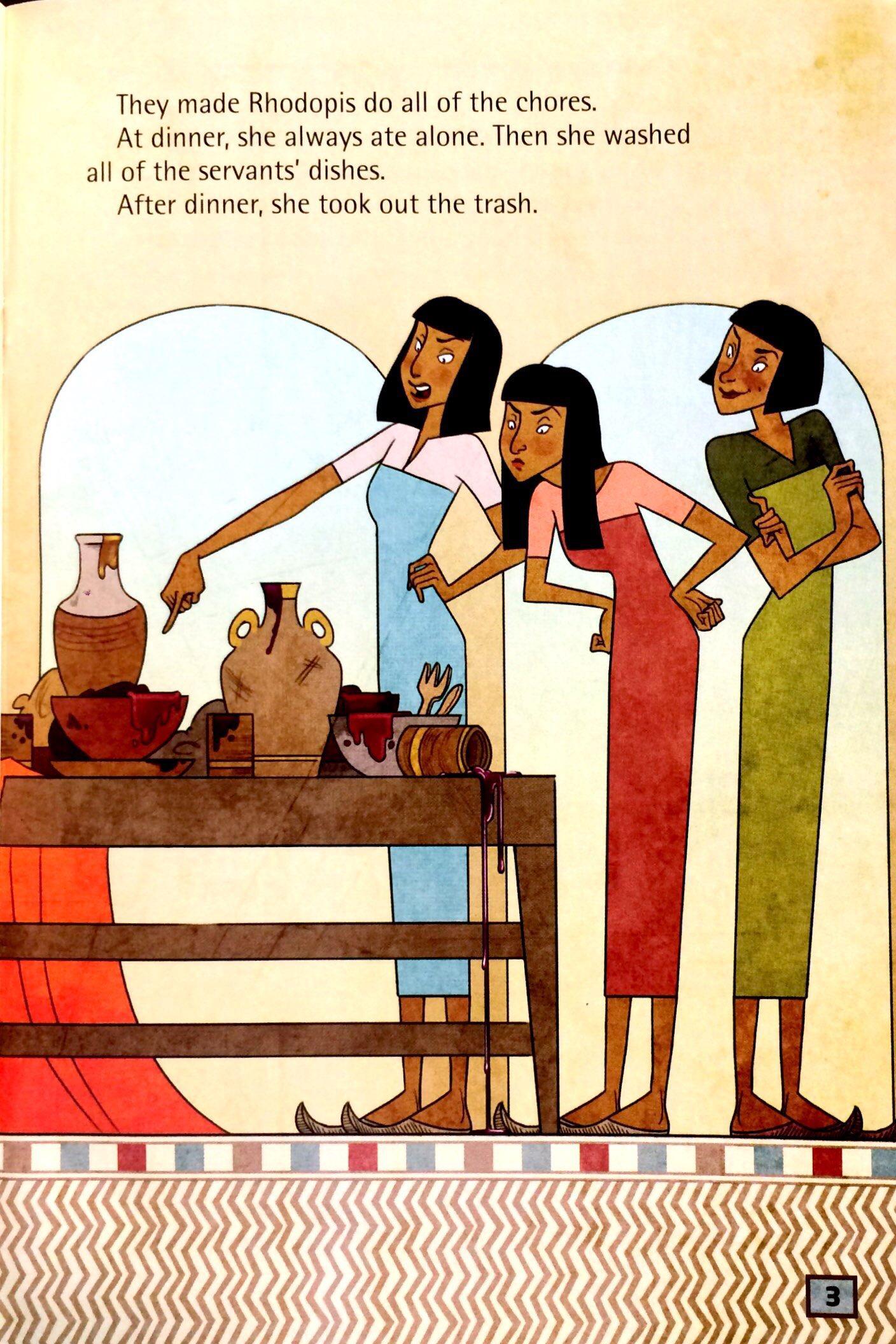 Rhodopis is a good and kind servant. But the other servants in the house treat her badly and make her do all the chores. One day, the Pharaoh invites everyone to a party. The other servants tell Rhodopis that she can't go. Will Rhodopis meet the Pharaoh anyway?