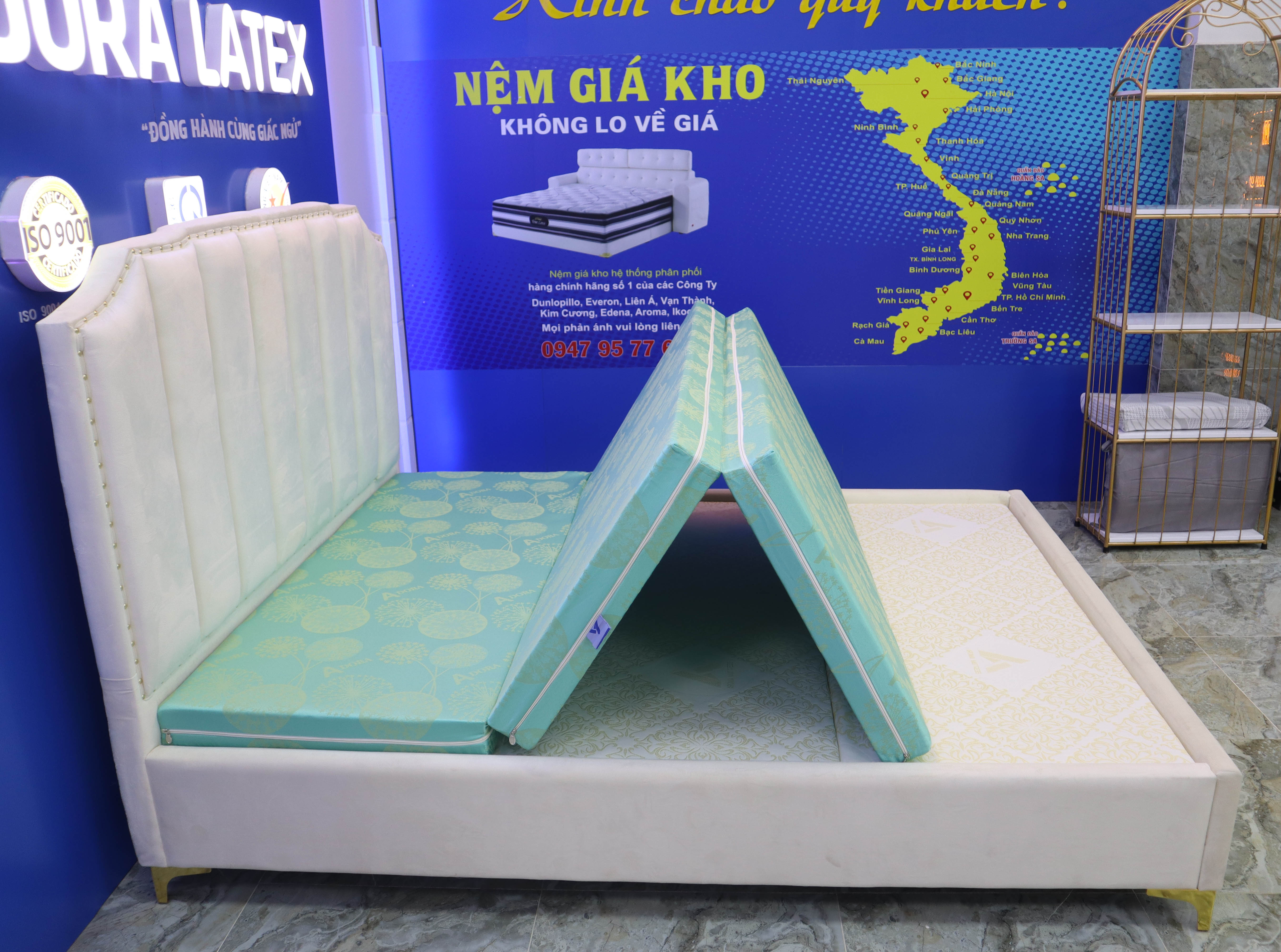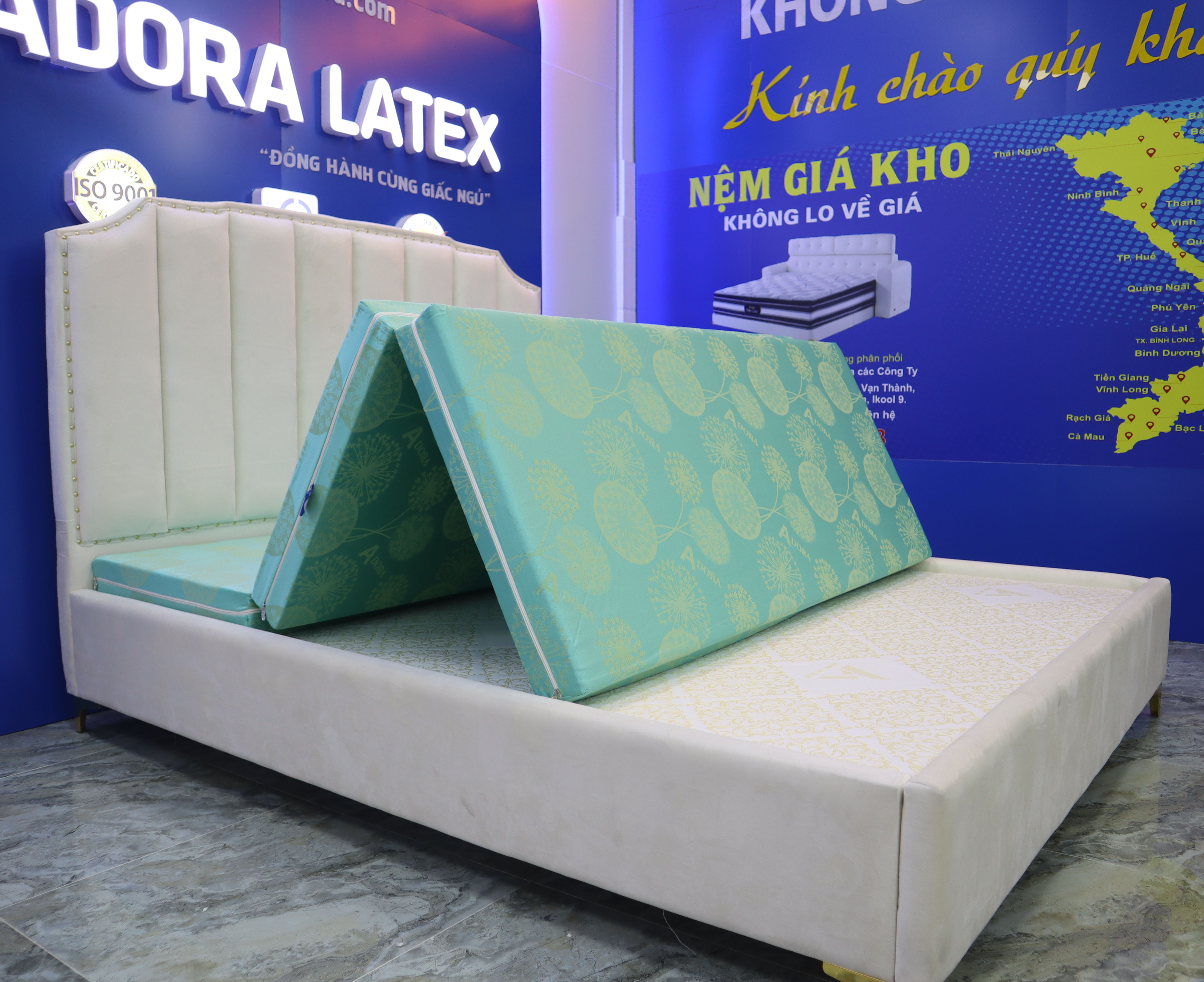 Mua tại Tiktok- Nệm Gấp 3 Cao Su Bông Adora được thiết kế với cấu trúc đa tầng độc đáo, kết hợp hoàn hảo giữa chất liệu cao su thiên nhiên và bông ép kháng khuẩn, nệm có độ cứng và độ đàn hồi tối ưu, đem đến sự nâng đỡ và bảo vệ cột sống cho người dùng.
