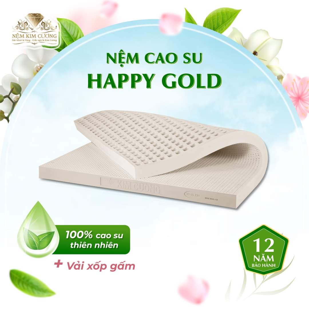 - Nệm Cao Su Kim Cương Happy Gold KCCS1610 (160 x 200 x 10 cm) được sản xuất từ 100% cao su thiên nhiên, được xử lý bằng công nghệ tiên tiến, có thể tiệt