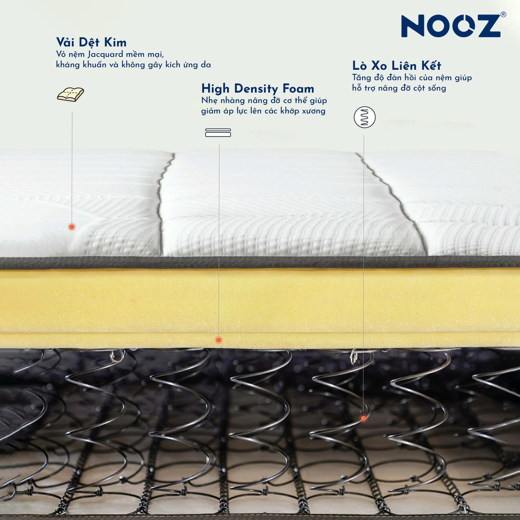 ✨Nệm Foam Lò Xo Bonnell NOOZ Home Goods Mattress lò xo liên kết cùng tầng cao su non nâng đỡ