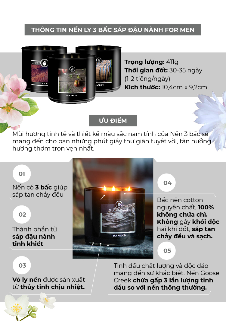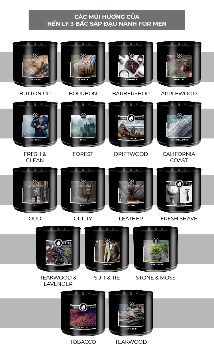 ✨Nến ly 3 bấc sáp đậu nành For Men Goose Creek (411g) - Tobacco