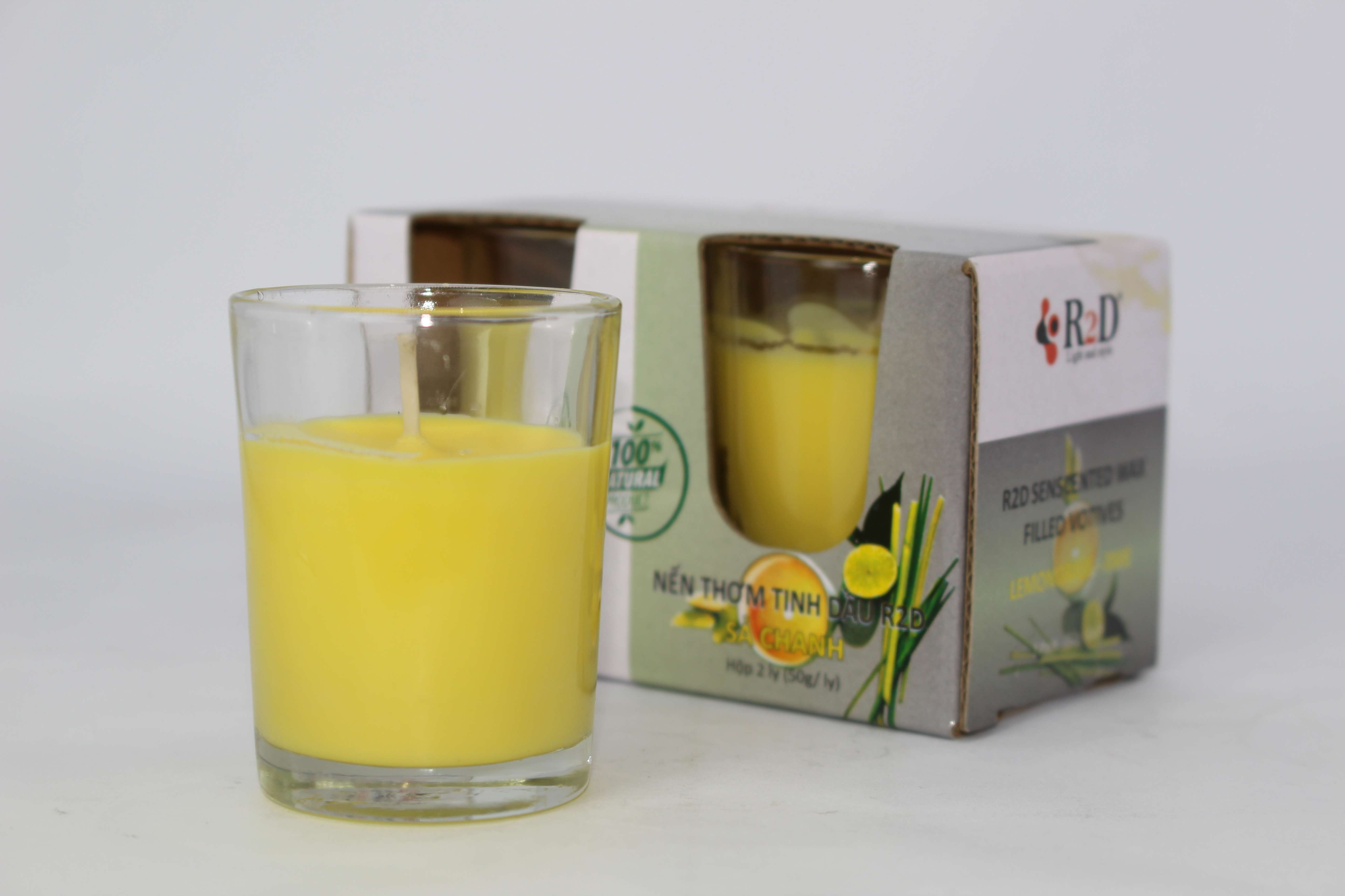 NẾN THƠM TINH DẦU SẢ CHANH [LY 50G - HỘP 2 LY] ĐẾN TỪ THƯƠNG HIỆU R2D, LÀM TỪ DẦU CỌ, DẦU DỪA, TINH DẦU, NGUYÊN LIỆU TỰ NHIÊN, LÀNH TÍNH. - Chúng