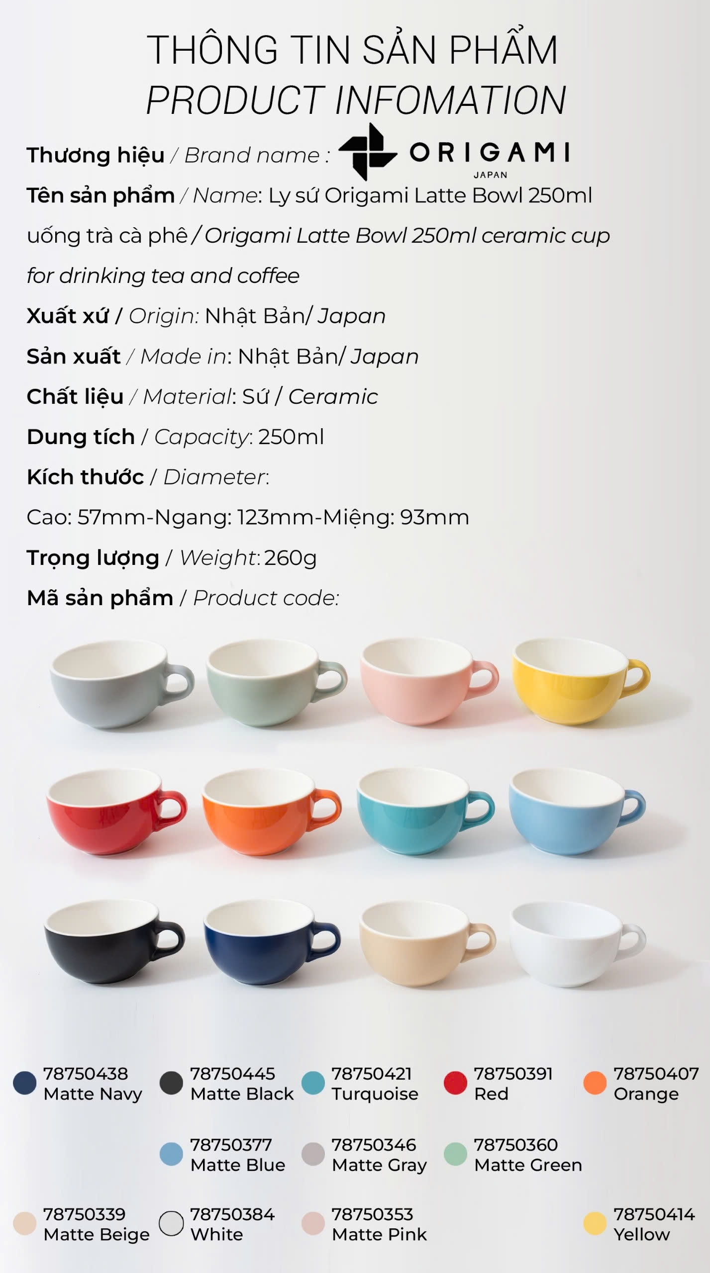 Ly sứ Origami Cappuccino Latte Bowl 170ml uống trà cà phê Ly sứ có độ dày cao, nặng tay giúp giữ nhiệt tốt. Vành miệng ly vát mỏng tạo cảm giác uống tốt hơn. Tay