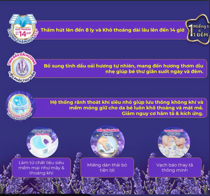 - TINH DẦU OẢI HƯƠNG - LIỆU PHÁP THƯ GIÃN Tã Molfix được bổ sung tinh dầu oải hương tự nhiên, mang đến hương thơm dịu nhẹ giúp bé thư giãn suốt cả ngày và đêm.