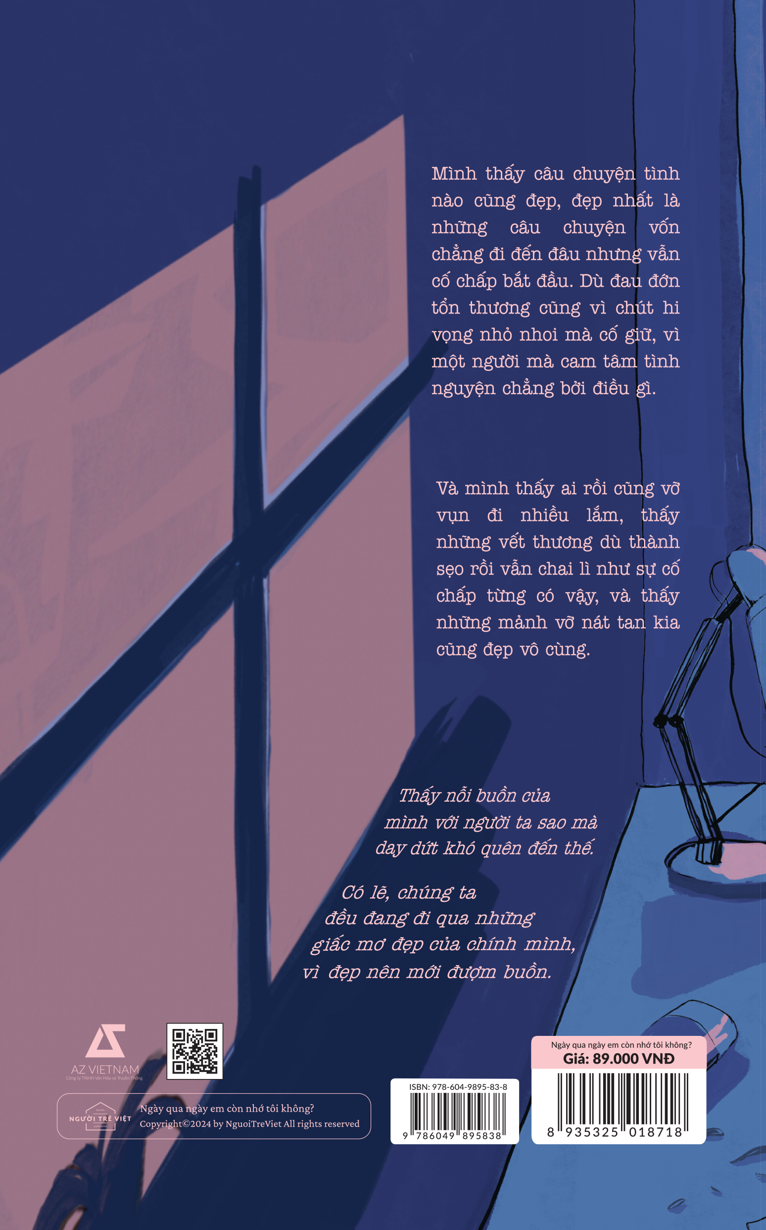 “Ngày qua ngày, em còn nhớ tôi không?” cũng đong đầy những cảm xúc như thế. Tựa p.háo hoa rực rỡ trong màn đêm rồi chợt vụt tắt, những mối tình cứ ngỡ là định mệnh mà cả đời này bạn tìm kiếm, thế nhưng ở đó chỉ có chằng chịt vết xước, tổn thương đến mãi sau này. Từng trang sách chứa những lời tâm sự, trải lòng đầy sự nuối tiếc nhưng cũng không kém phần nhẹ nhõm, để bạn nhận ra rằng: “Đừng nghĩ rằng m.ình không xứng đáng, không giữ nổi yêu thương, rồi sẽ có người kiên nhẫn ở bên, đi cùng bạn đến cuối con đường. Chúng ta xứng đáng có được hạnh phúc!”