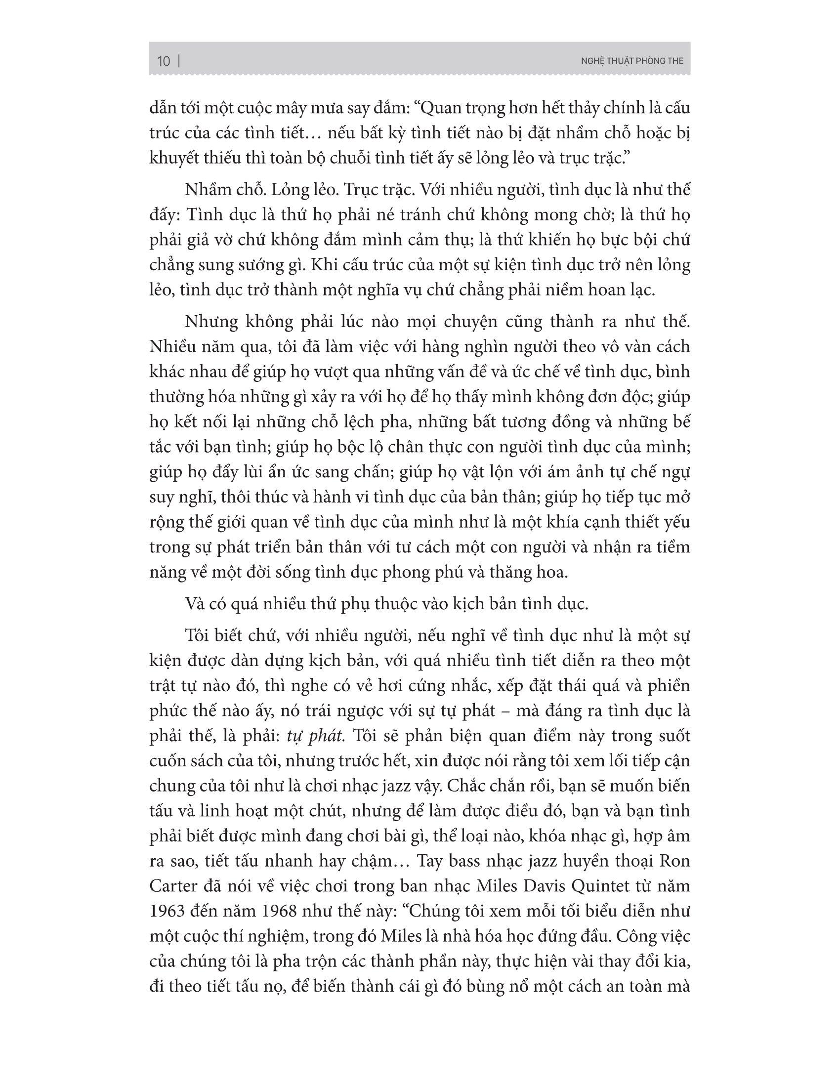 Nghệ Thuật Phòng The - Để Cuộc Yêu Thăng Hoa sẽ giúp bạn vượt qua những vấn đề và ức chế về tình dục, giúp bạn kết nối lại những chỗ “lệch pha”, những bất tương đồng và bế tắc với bạn tình để mở rộng thế giới quan về “chuyện ân ái”. Nhờ đó, bạn sẽ không cảm thấy chán mà thay vào đó là một đời sống tình dục phong phú và thăng hoa.