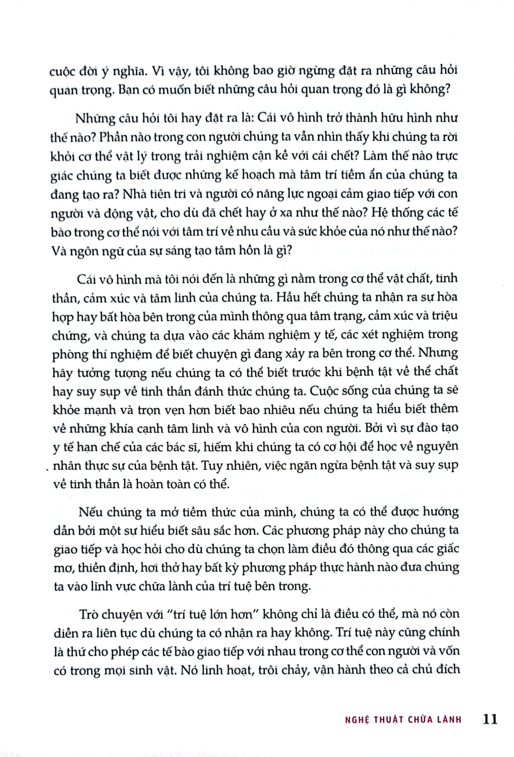 Nghệ Thuật Chữa Lành - Hành Trình Tìm Kiếm Tri Thức Và Khả Năng Tự Chữa Lành Bên Trong Bạn Hạnh phúc đích thực có được từ sự biết hài lòng và hòa bình nội tại. Sự hài lòng và hòa bình nội tại chỉ có thể đạt được thông qua sự phát triển tinh thần vị tha về tình thương, từ bi và diệt trừ vô minh, ích kỷ và tham lam Khi mở lòng, khi lắng nghe và khai thác trí tuệ bên trong và ý thức lớn hơn, chúng ta bắt đầu một hành trình hướng tới sức khỏe và chữa lành bản thân, một hành trình viên mãn và đôi khi kỳ diệu. Khi đồng ý trên hành trình này, chúng ta trở thành những nghệ sĩ và cuộc sống của chúng ta trở thành bức tranh