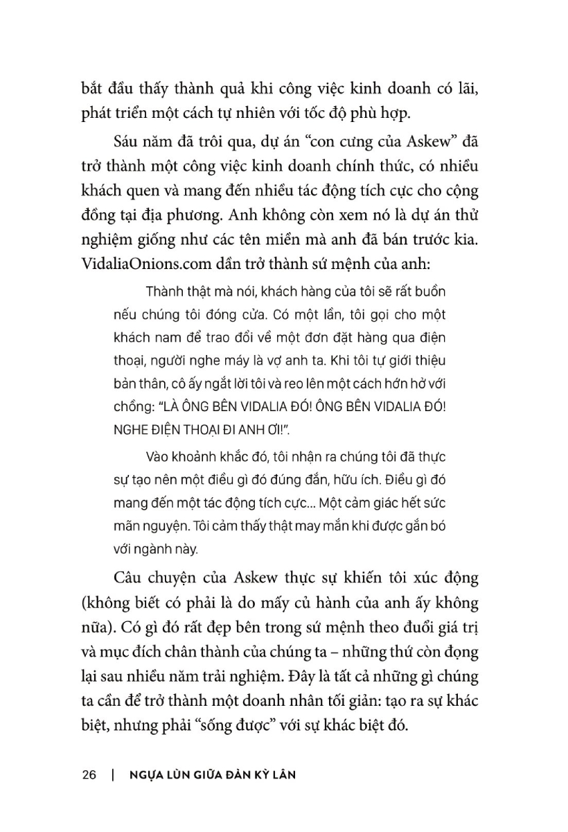 Nhiều nhà kinh doanh và những người đang có ý định khởi nghiệp cũng đã trải qua quá trình tự hỏi bản thân rất nhiều và kết quả là đi đến cùng một kết luận. Bạn sẽ bắt gặp nhiều câu chuyện của họ trong cuốn sách Ngựa Lùn Giữa Đàn Kỳ Lân. Trong sách, họ được gọi là những “doanh nhân tối giản” và gọi công ty của họ là “doanh nghiệp tối giản”.