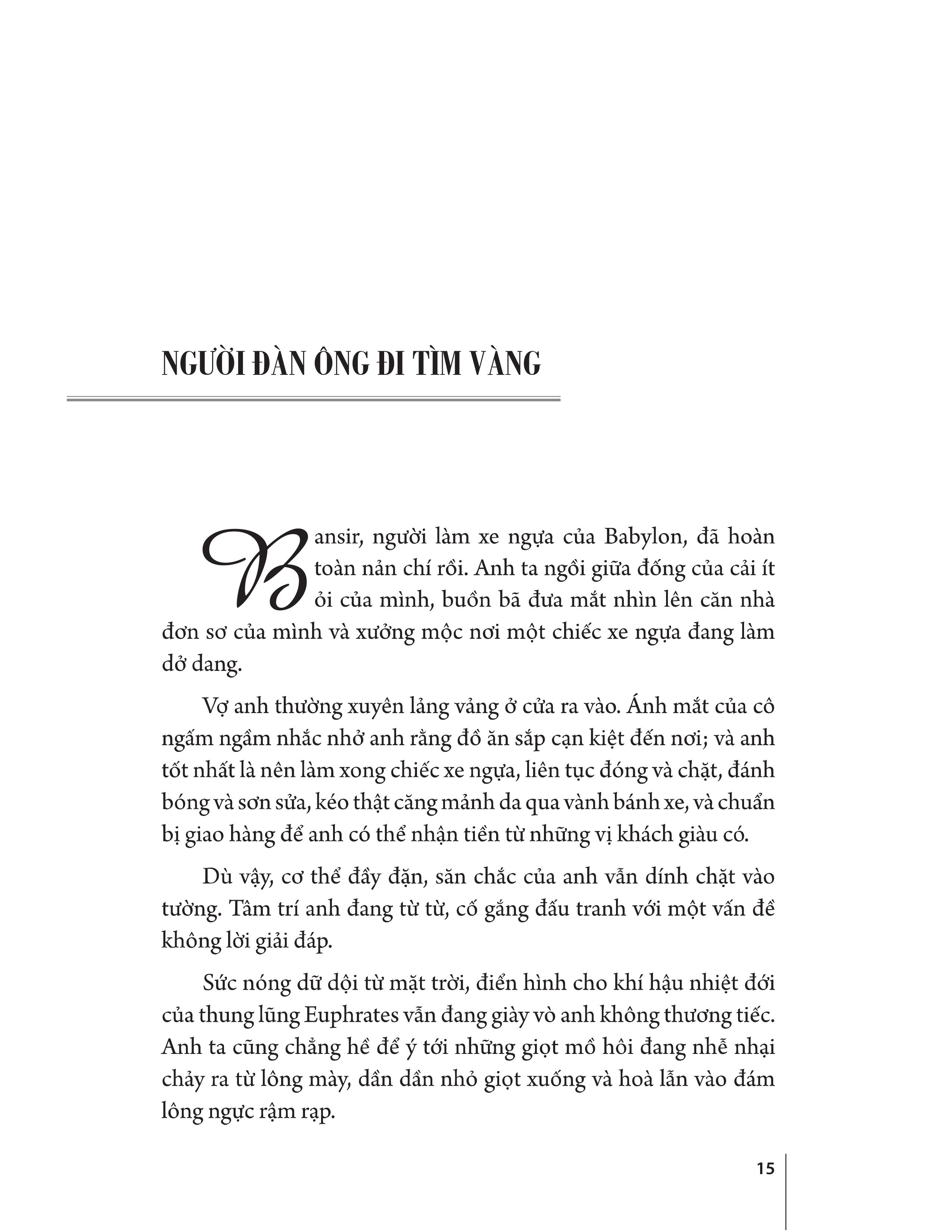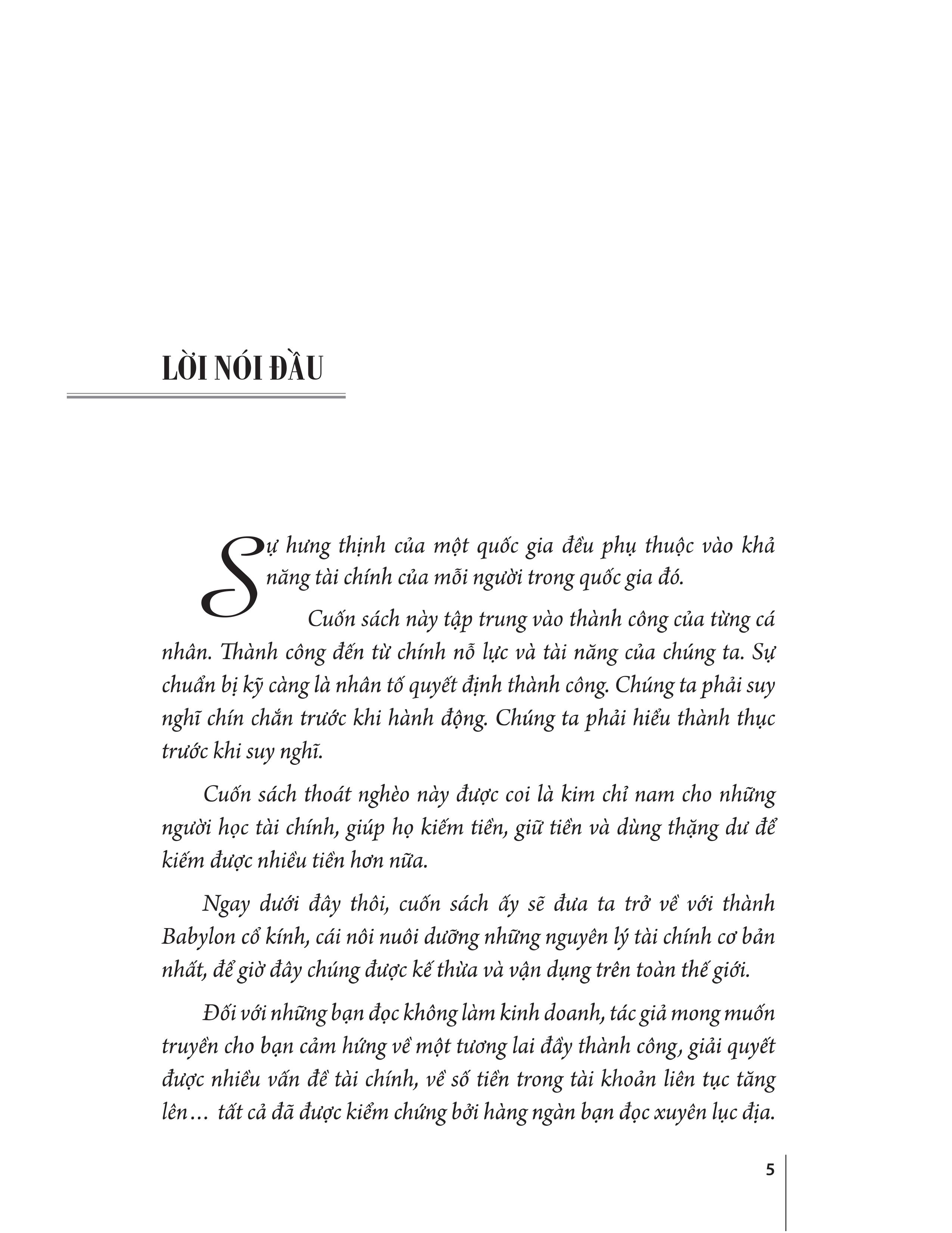 Những trang sách này sẽ đưa chúng ta trở lại vương quốc Babylon cổ đại, cái nôi nuôi dưỡng những nguyên lý cơ bản về tài chính mà giờ đây con người hiện đại đã kế thừa và vận dụng trên toàn thế giới.