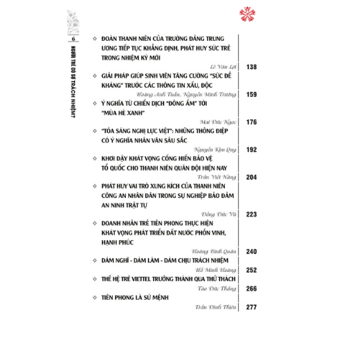 Nội dung cuốn sách tập hợp bài viết của các tác giả là những người đã và đang công tác tại các ban, bộ, ngành trung ương và địa phương, hoạt động trong lĩnh vực báo chí, truyền thông, doanh nghiệp… Các tác giả cùng trao đổi, chia sẻ quan điểm, suy nghĩ, trăn trở, thể hiện niềm tin, sự khẳng định đối với vai trò của người trẻ trong công việc và cuộc sống hiện nay; đưa ra những góc nhìn, đánh giá đúng đắn, khách quan về thế hệ trẻ và lý do tại sao cần trao cho họ những cơ hội, chính sách ưu tiên để phát triển. Đặc biệt, ý nghĩa xuyên suốt cuốn sách mà tập thể tác giả muốn gửi gắm là sự động viên, khích lệ thế hệ trẻ cần nuôi dưỡng, giữ gìn “vốn quý” của tuổi trẻ, không ngừng phát triển và sáng tạo ra nhiều giá trị hơn nữa nhằm bảo đảm một tương lai thành công, góp phần hoàn thành sứ mệnh lịch sử của mình. Trong đó, có một số bài tiêu biểu như: bài viết “Bệnh sợ trách nhiệm” của Tổng Bí thư Nguyễn Phú Trọng đăng trên Tạp chí Cộng sản năm 1973; “Vấn đề thanh niên trong tư tưởng Hồ Chí Minh” của GS.TS Tạ Ngọc Tấn, Phó Chủ tịch Thường trực Hội đồng Lý luận Trung ương; “Nâng cao hiệu quả công tác tư tưởng đối với thanh niên trong tình hình mới” của PGS.TS Lê Hải Bình, Ủy viên dự khuyết Trung ương Đảng, Phó Trưởng Ban Tuyên giáo Trung ương; “Trách nhiệm của đội ngũ công chức trẻ trong giai đoạn hiện nay” của PSG.TS Phạm Minh Tuấn, Phó Tổng biên tập phụ trách Tạp chí Cộng sản; "Học sinh, sinh viên, thanh niên dân tộc thiểu số rèn đức, luyện tài, phấn đấu vươn lên đóng góp vào sự phát triển của cộng đồng, dân tộc" của đồng chí Hầu A Lềnh, Ủy viên Trung ương Đảng, Bộ trưởng, Chủ nhiệm Ủy ban Dân tộc; “Làm thế nào để đội ngũ trí thức trẻ phát huy được trách nhiệm, hoàn thành tốt vai trò lịch sử của mình?” của GS.TS Phùng Hữu Phú. Ngay từ khi ra mắt cuốn sách đã nhận được sự đón đọc của đông đảo bạn đọc và cơ quan báo chí đưa tin: