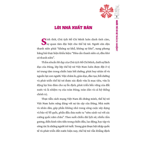 Các tác giả cùng trao đổi, chia sẻ quan điểm, suy nghĩ, trăn trở, thể hiện niềm tin, sự khẳng định đối với vai trò của người trẻ trong công việc và cuộc sống hiện nay; đưa ra những góc nhìn, đánh giá đúng đắn, khách quan về thế hệ trẻ và lý do tại sao cần trao cho họ những cơ hội, chính sách ưu tiên để phát triển. Đặc biệt, ý nghĩa xuyên suốt cuốn sách mà tập thể tác giả muốn gửi gắm là sự động viên, khích lệ thế hệ trẻ cần nuôi dưỡng, giữ gìn “vốn quý” của tuổi trẻ, không ngừng phát triển và sáng tạo ra nhiều giá trị hơn nữa nhằm bảo đảm một tương lai thành công, góp phần hoàn thành sứ mệnh lịch sử của mình. Trong đó, có một số bài tiêu biểu như: bài viết “Bệnh sợ trách nhiệm” của Tổng Bí thư Nguyễn Phú Trọng đăng trên Tạp chí Cộng sản năm 1973; “Vấn đề thanh niên trong tư tưởng Hồ Chí Minh” của GS.TS Tạ Ngọc Tấn, Phó Chủ tịch Thường trực Hội đồng Lý luận Trung ương; “Nâng cao hiệu quả công tác tư tưởng đối với thanh niên trong tình hình mới” của PGS.TS Lê Hải Bình, Ủy viên dự khuyết Trung ương Đảng, Phó Trưởng Ban Tuyên giáo Trung ương; “Trách nhiệm của đội ngũ công chức trẻ trong giai đoạn hiện nay” của PSG.TS Phạm Minh Tuấn, Phó Tổng biên tập phụ trách Tạp chí Cộng sản; "Học sinh, sinh viên, thanh niên dân tộc thiểu số rèn đức, luyện tài, phấn đấu vươn lên đóng góp vào sự phát triển của cộng đồng, dân tộc" của đồng chí Hầu A Lềnh, Ủy viên Trung ương Đảng, Bộ trưởng, Chủ nhiệm Ủy ban Dân tộc; “Làm thế nào để đội ngũ trí thức trẻ phát huy được trách nhiệm, hoàn thành tốt vai trò lịch sử của mình?” của GS.TS Phùng Hữu Phú