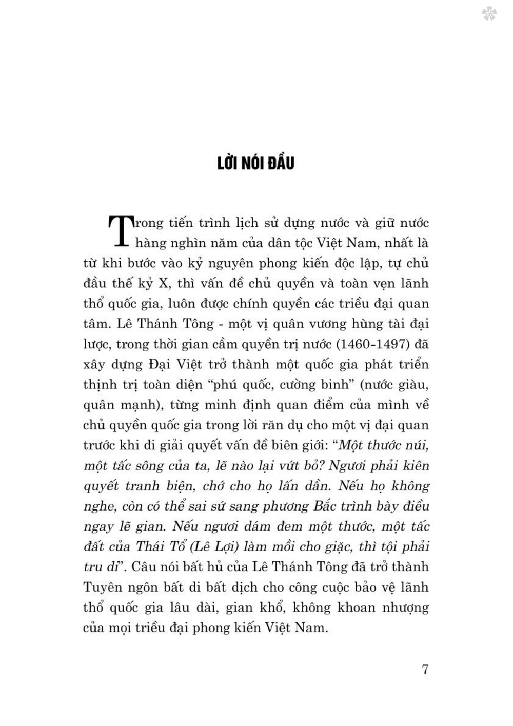 Cuốn sách là một số câu chuyện về việc bảo vệ biên cương, biển đảo thời kỳ phong kiến của ông cha ta, từ 5 6 những vấn đề như chính sách quốc phòng, việc xây dựng lực lượng quân sự, đãi ngộ đối với đội ngũ quan lại trực tiếp xử lý công việc tại cửa ải đến các tấm gương trong việc bảo vệ chủ quyền đất nước..