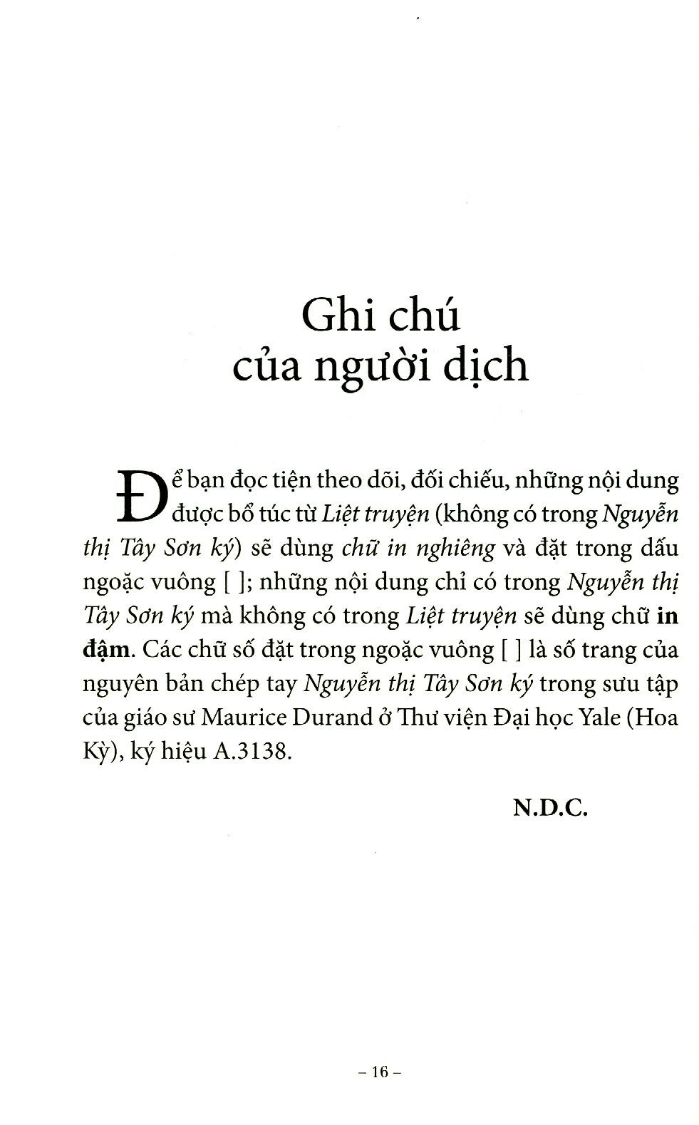 Số tài liệu lưu trữ trong Thư viện của Đại học Yale có một cuốn sách chép tay nhan đề Nguyễn thị Tây Sơn ký, nội dung về đời Tây Sơn (ký hiệu A. 3138), tiền chủ nhân vốn là học giả Maurice Durand.