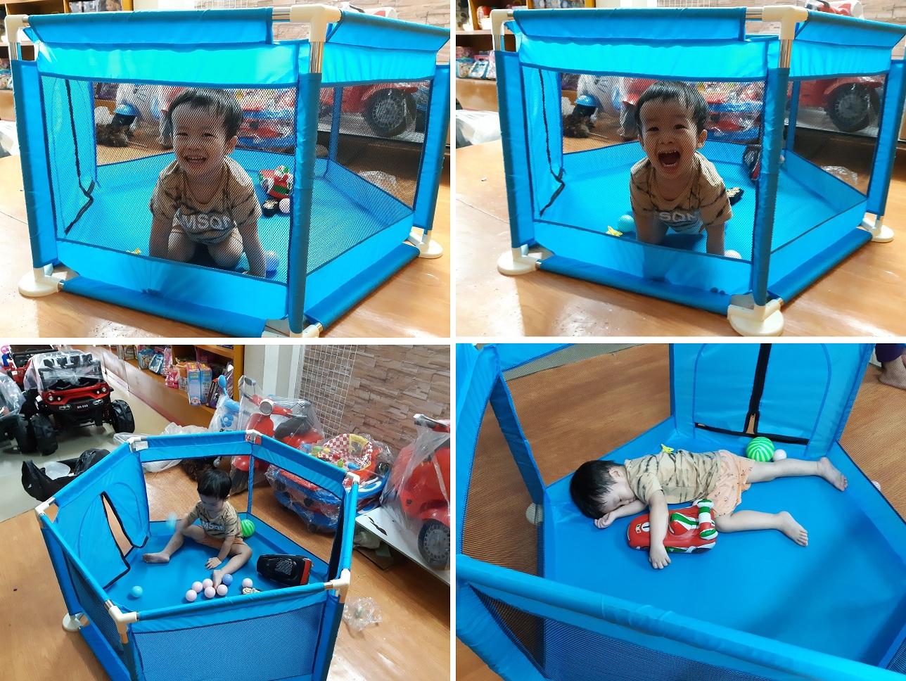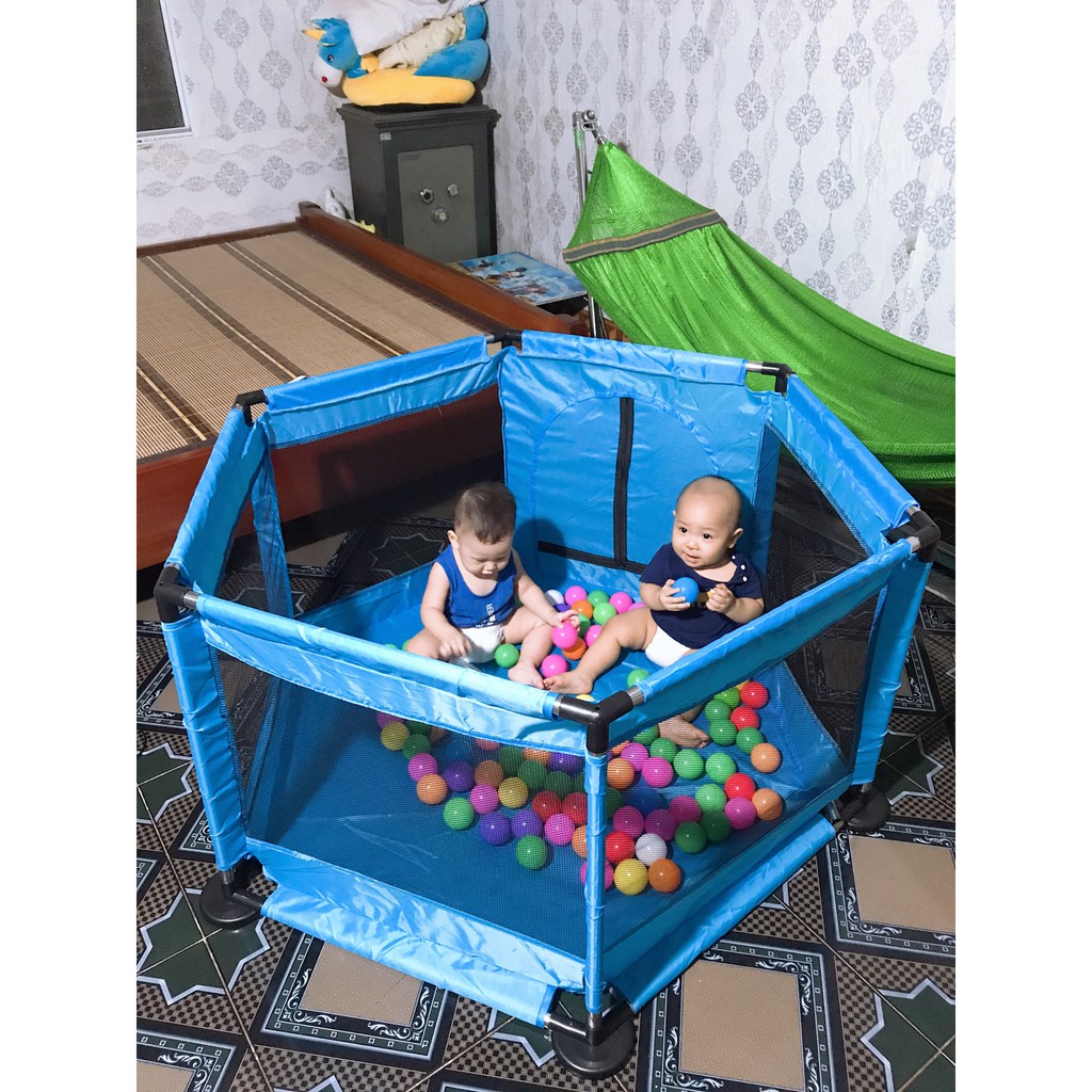 - Quây bóng có kích thước lớn để bé ngồi chơi bên trong vô cùng an toàn như một chiếc cũi lớn. Vừa giúp các bậc phụ huynh rảnh tay hơn, để làm những công việc nội trợ khác.