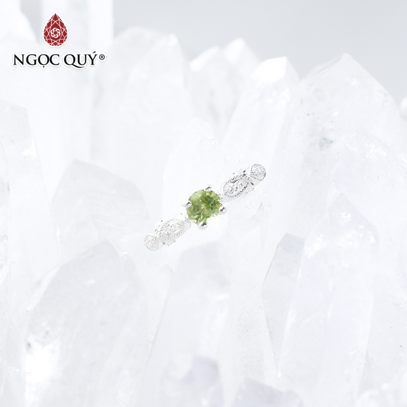 NHẪN BẠC NỮ ĐÁ PERIDOT : Đá Peridot thực chất được hình thành từ đá magma trong tinh thể núi lửa , đá được tìm thấy ở hệ tinh thể trực thoi, hiếm khi ở