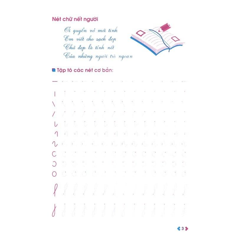 - Chỉn chu và chi tiết ngay từ những bước đầu tiên. - Hướng dẫn tư thế ngồi viết, Cách cầm bút đúng cách. - Tập tô tập viết: Nét cơ bản, Chữ cái, chữ