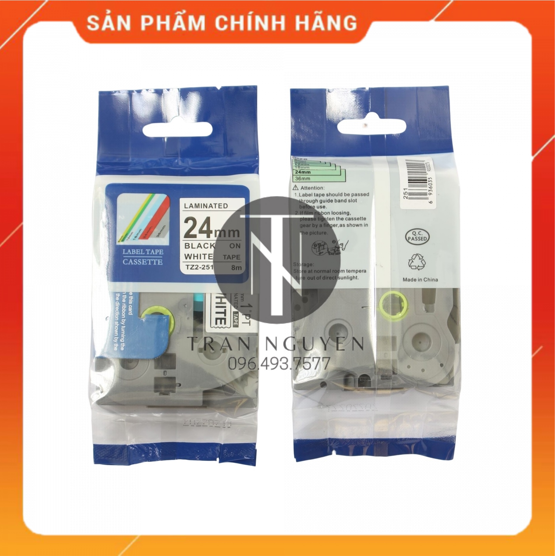 ✨Nhãn In đa lớp Tz2-251 - Đen nền trắng 24mm x 8m - Hàng nhập khẩu