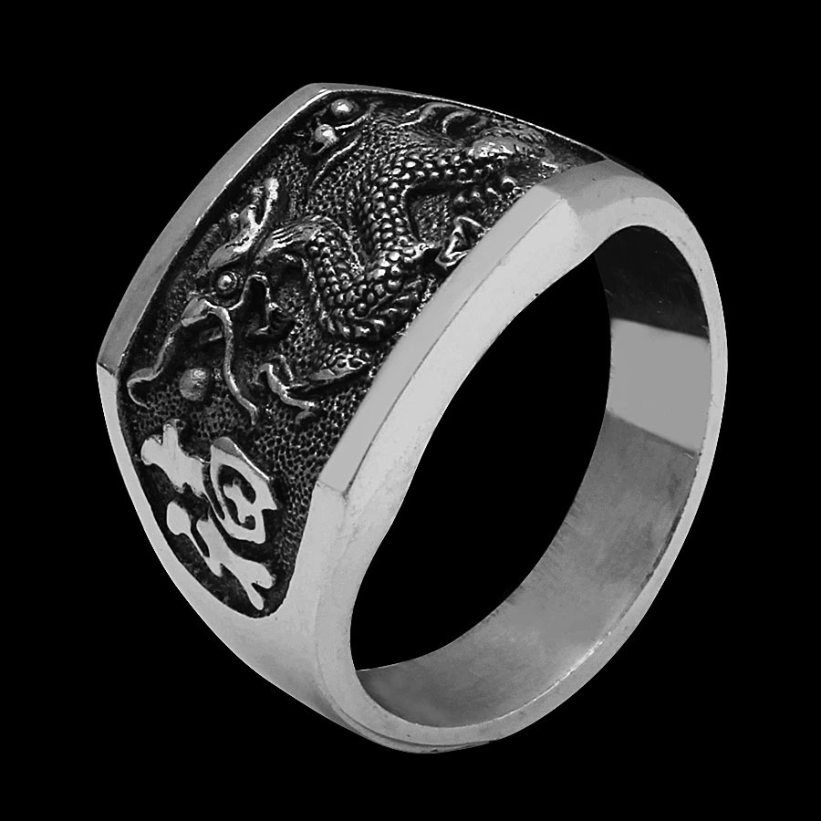 Chất liệu Thân Nhẫn: Hợp kim Titanium Chất liệu đá: Đá Zircon nhân tạo, kiểu dáng kim cương Thiết kế: Khắc rồng trên thân và mặt nhẫn, tinh xảo, chi tiết. Công dụng: Trang sức,