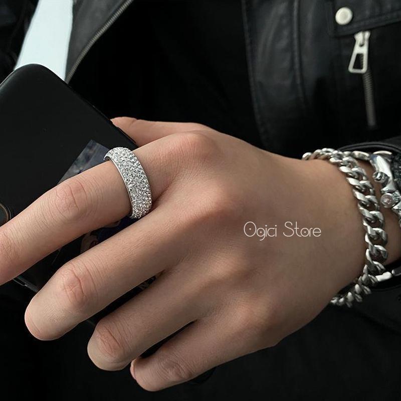 Mua tại TiktokNhẫn nam nữ thép không gỉ thời trang, Nhẫn nam họa tiết đính đá lấp lánh phong cách thanh lịch sang trọng, Unisex