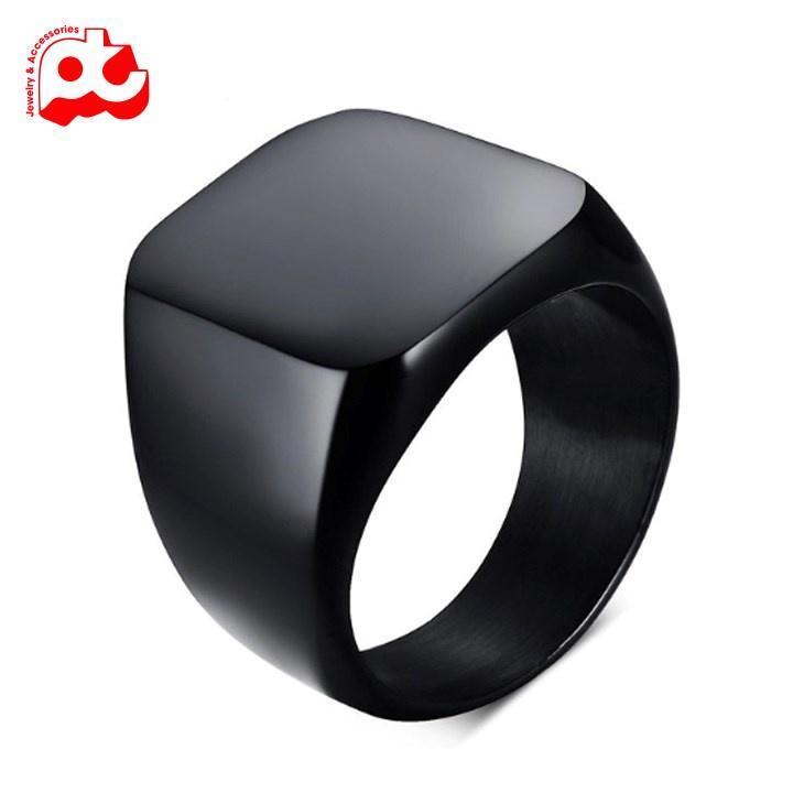 Nhẫn nam titan thời trang rẻ đẹp kiểu mặt trơn vuông to titan cao cấp thép không gỉ trangsucpt màu mạ đen PTNNA25