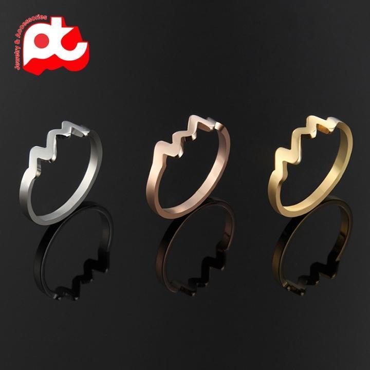 Nhẫn titan nữ thời trang cao cấp kiểu nhịp tim cách điệu thép không gỉ titanium trangsucpt có 3 màu sắc NNUT51