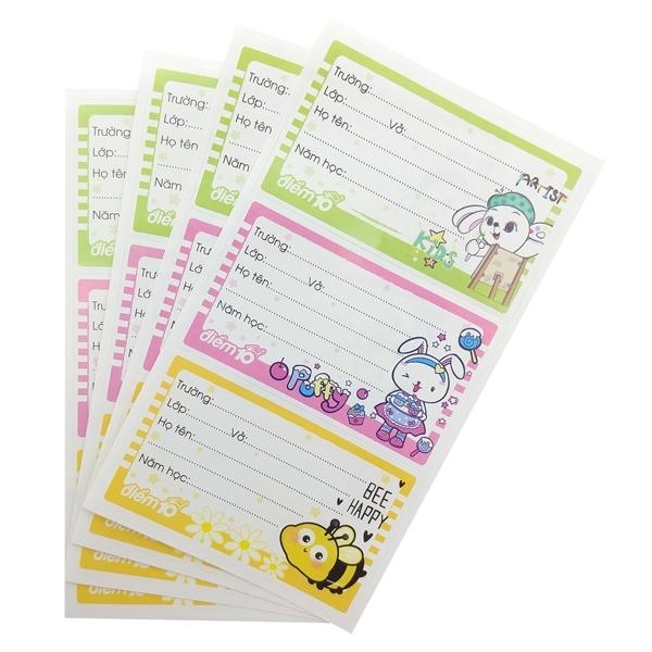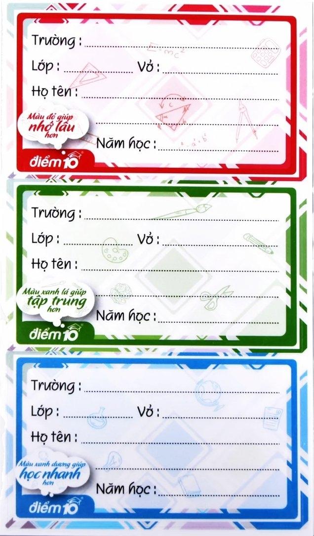 Bóc tách các tờ nhãn dán ra khỏi xấp sau đó dán nhãn vở lên quyển tập, sách cần sử dụng và ghi thông tin lên trên bề mặt nhãn vở.