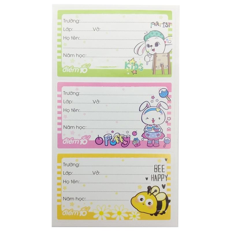 - Xấp 40 Nhãn Vở Thiên Long TP-NBl03 dùng để ghi họ tên đính ở tập sách vở giúp các em phân biệt được các môn học khác nhau, tạo hứng thú khi mở sách