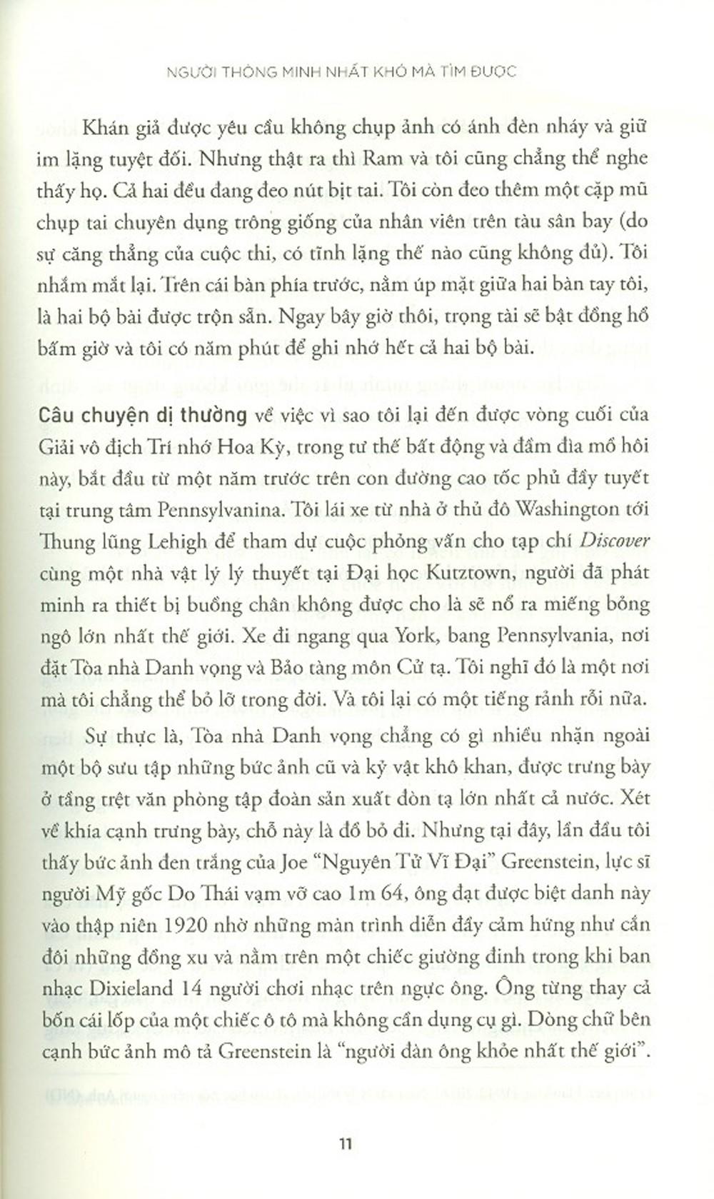Trong quá trình này, Foer cũng gặp gỡ, trao đổi, giao lưu cùng nhiều tên tuổi có tiếng trong làng “luyện trí nhớ”, cũng như một số trường hợp đặc biệt được đưa vào nghiên cứu khoa học về trí nhớ, để từ đó tìm hiểu sâu hơn về yếu tố giúp con người nhớ được nhiều hay thậm chí quên tất cả.