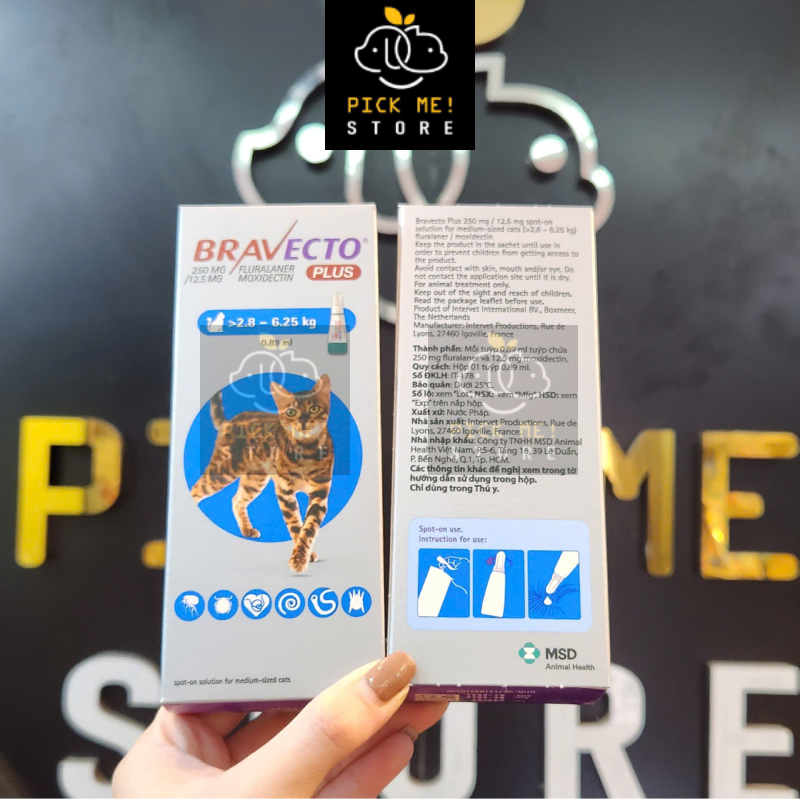 Nhỏ gáy BRAVECTO Trị Bọ Chét, Ve Rận, Rận Tai, Viêm da cho Mèo từ 2.8-6.25kg CÔNG DỤNG SẢN PHẨM - Tiêu diệt ngoại ký sinh: Ve, bọ chét, rận tai từ đó trả lại