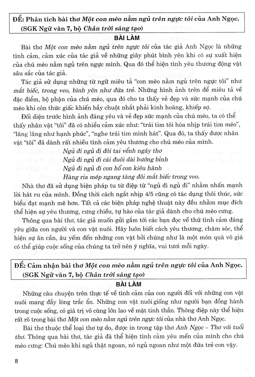 Những bài văn trong cuốn sách này, các em nên dùng để tham khảo, không nên phụ thuộc, rập khuôn, mà hãy tiếp thu các ý tưởng và trải nghiệm văn chương khi đọc. Từ đó, phát huy và kết hợp với tư duy sáng tạo của chính các em để viết nên những đoạn văn hay, làm được những bài văn đặc sắc.