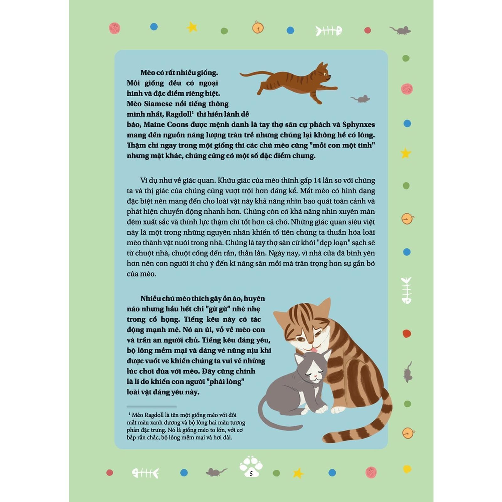 Câu Chuyện Về Loài Mèo là bộ sưu tập những cuộc phiêu lưu có thật của hơn 30 chú mèo trên khắp thế giới – vui tính có, dũng cảm có và thông minh cũng có. Cuốn sách nhỏ nhưng vô cùng xinh xắn này sẽ cùng các độc giả nhí khám phá câu chuyện của Tama – cô mèo quản lí nhà ga; Masha – cô mèo hoang đã cứu sống một đứa trẻ bị bỏ rơi hay Stubbs – ngài thị trưởng nổi tiếng… Tất cả đều mang đến cho độc giả những câu chuyện rất đáng kinh ngạc.