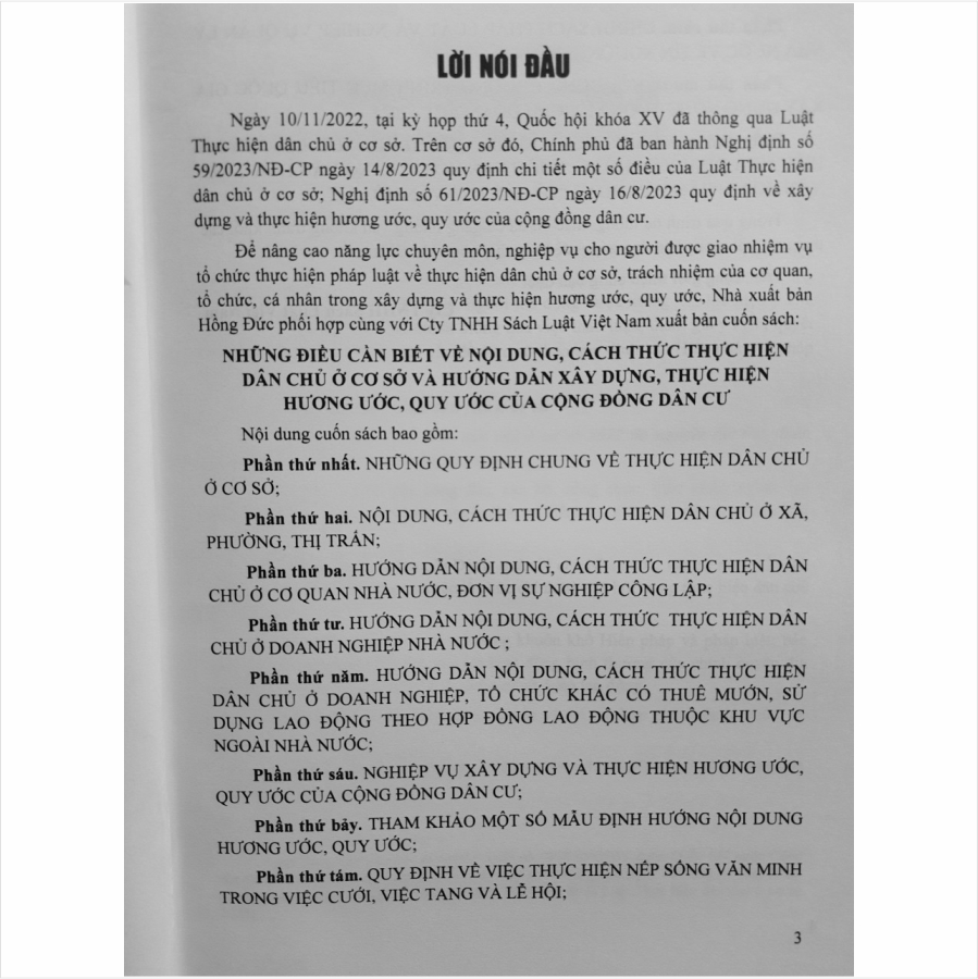 Nhằm phổ biến đến Quý Cơ quan, Đơn vị và Quý khách hàng thân thiết nắm bắt kịp thời những quy định mới nêu trên. Nhà sách Nam Việt xin trân trọng giới thiệu cuốn sách: Những Điều Cần Biết Về Nội Dung, Cách thức Thực Hiện Dân Chủ Ở Cơ Sở và Hướng Dẫn Xây Dựng Thực Hiện Hương Đức, Quy Ước Của Cộng Đồng Dân Cư