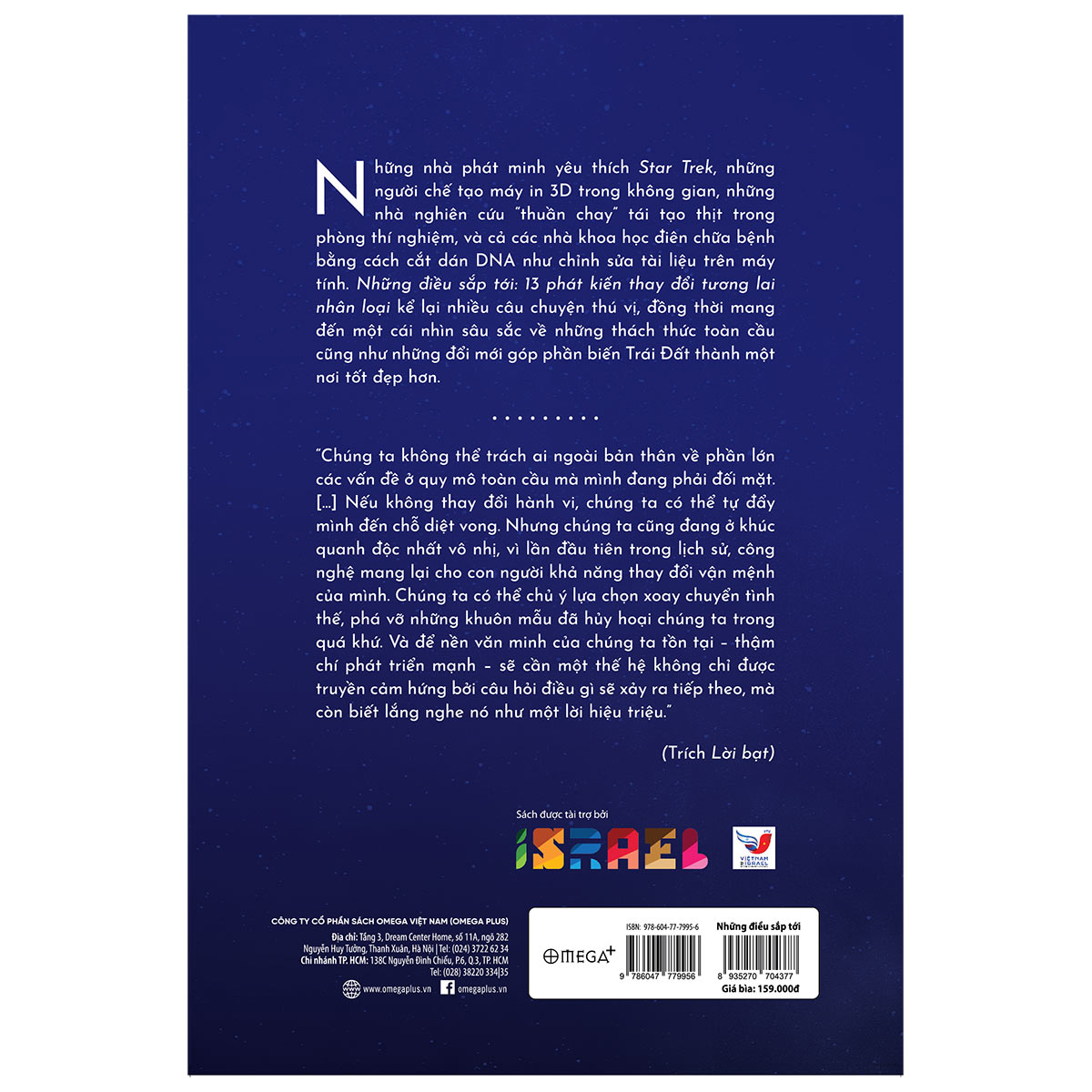 Có biết bao điều ta cho là không thể, cho đến khi chúng thực sự được thực hiện? Loài người đang đứng trước nguy cơ tự đẩy mình đến bờ tuyệt chủng và phải đối mặt với nạn đói, ô nhiễm cùng sự nóng lên toàn cầu, thế nhưng bất chấp cuộc khủng hoảng hiện sinh này, chúng ta đồng thời cũng đang ở trong một kỷ nguyên của sự giàu có và đổi mới vượt trội. Chúng ta có thể thay đổi vận mệnh của mình, như cách câu chuyện của mỗi cá nhân, tổ chức trong NHỮNG ĐIỀU SẮP TỚI: 13 PHÁT KIẾN THAY ĐỔI TƯƠNG LAI NH N LOẠI đã mang đến hy vọng và biến những hy vọng đó thành sự thật.