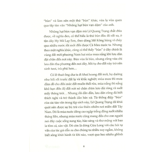 Những hạt bùn vạn dặm I. Giới Thiệu Sách Tập tản văn “Những hạt bùn vạn dặm” được viết nên từ tình cảm sâu đậm của tác giả với quê hương miền Tây Nam Bộ, một miền đất bao la sông nước, là nơi hội tụ của những dòng lưu dân khắp tứ xứ. Những con người chân chất, hào sảng ấy đã hình thành nên một cộng đồng đậm đà tình làng nghĩa xóm và một nền văn hóa đa dạng tựa như những cánh đồng miền Tây Nam Bộ trù phú được những dòng phù sa bao đời bồi đắp. II. Thông Tin Chi Tiết Mã Hàng: 8938538124047 Nhà Cung Cấp: Công Ty Cổ Phần Văn Hóa Văn Lang Tác Giả: Lê Quang Trạng Người Dịch: Nhà Xuất Bản: NXB Lao Động Năm Xuất Bản: 2023 Ngôn Ngữ: Tiếng Việt Trọng Lượng: 531 gram Kích Thước: 16 x 22 Số Trang: 268 Hình Thức: Bìa Mềm