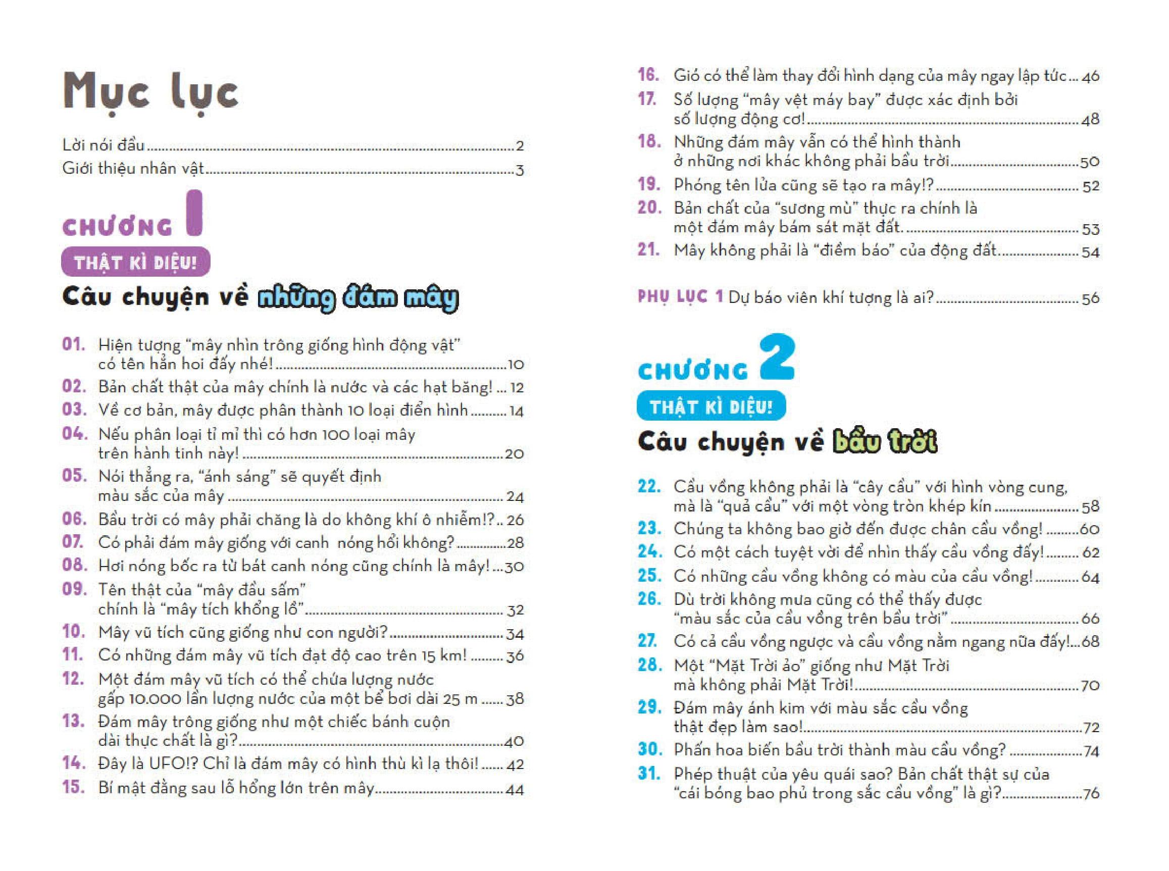 Mua tại TiktokNhững Kì Quan Thời Tiết - Từ Điển Bỏ Túi Về Các Hiện Tượng Thiên Nhiên Kì Thú - Tập 1 Mỗi khi ngước nhìn bầu trời, hẳn mỗi người trong chúng ta đều một lần nghĩ rằng: “Mình muốn leo lên những đám mây khổng lồ quá!”, hoặc “Không biết điểm cuối của cầu vồng ở đâu nhỉ?”. Bầu trời quá đỗi thân thuộc khi ngày ngày chúng ta vẫn ngắm nhìn nó và lắng nghe dự báo thời tiết trên tivi, thế nhưng vẫn còn rất nhiều điều về bầu trời mà chúng ta chẳng hay biết đến. Với cách diễn giải đơn giản, dễ hiểu cùng hình minh họa trực quan, sinh động, bộ sách Những Kì Quan Thời Tiết – Từ Điển Bỏ Túi Về Các Hiện Tượng Thiên Nhiên Kì Thú sẽ giải đáp nhiều thắc mắc của độc giả về bầu trời, các đám mây, các hiện tượng thời tiết vừa quen thuộc, vừa lạ kì. Bộ sách sẽ kéo gần khoảng cách giữa chúng ta với bầu trời và những đám mây, khiến bạn phải sửng sốt thốt lên: “A! Nguyên do của hiện tượng đó là thế!”