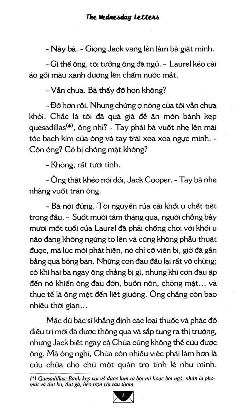 "Em có tin là chúng ta đã cưới nhau không? Phải, chúng ta đã cưới nhau rồi em ạ! Thật là một ngày tuyệt vời! Giờ đã là 11 giờ 50 phút và em đang ngủ say sưa ở góc phòng. Theo em thì thiên thần có ngáy khi ngủ không? Thực sự là có đấy, ít nhất thiên thần ấy là em. Đó là điều buồn cười nhất mà anh vừa khám phá ra. Ai mà biết phụ nữ cũng ngáy cơ chứ? Chắc em ghét anh lắm vì đã viết ra tật xấu này nhưng giờ thì em có thể làm được gì anh chứ? Chúng ta cưới nhau rồi!