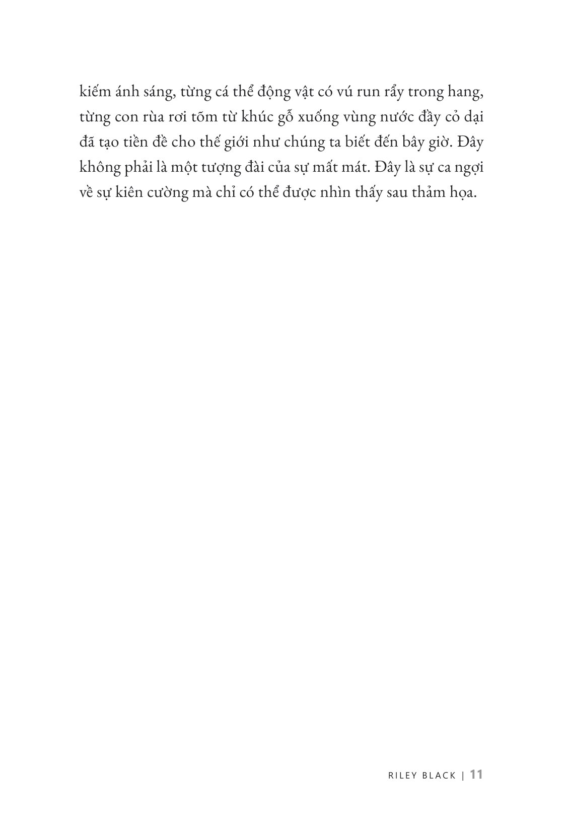 Ấy vậy mà thế giới như chúng ta biết ngày hôm nay lại chính là sự nảy nở tiếp sau thảm họa kéo dài, khi mà sự sống không chỉ quay trở lại mà còn được định hình lại bởi chính thảm họa đó. Dưới một góc độ rất chuẩn xác về khoa học nhưng cũng đầy nhân văn, tác giả Riley Black đã tiếp cận đại thảm họa khi xưa như một câu chuyện bi kịch nhưng giàu hy vọng về bản chất mạnh mẽ của sự sống trên hành tinh của chúng ta.