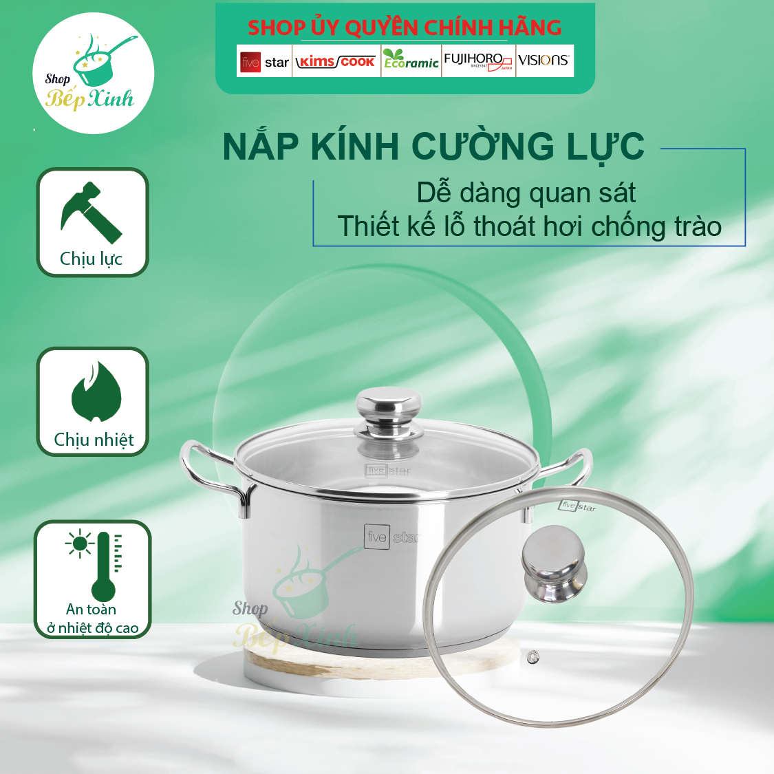 Thông tin sản phẩm Vung kính trong suốt chịu nhiệt Tay cầm bằng thép không gỉ 304, hàn điểm
