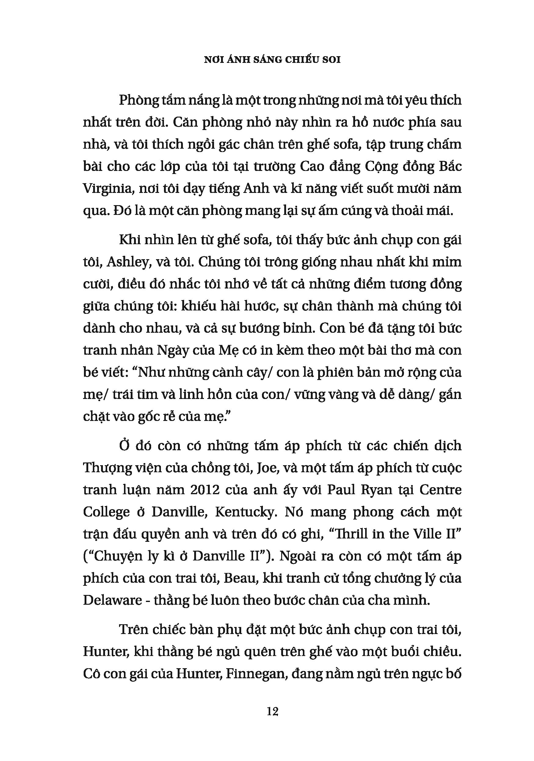 Nơi ánh sáng chiếu soi là một cuốn sách đẹp được kể bởi một tâm hồn đẹp, là một cái nhìn chân thực, ấm áp về một gia đình đầy tình thân của Tổng thống Mỹ Joe Biden, và về cuộc sống của Jill - người phụ nữ là trung tâm của tổ ấm này.