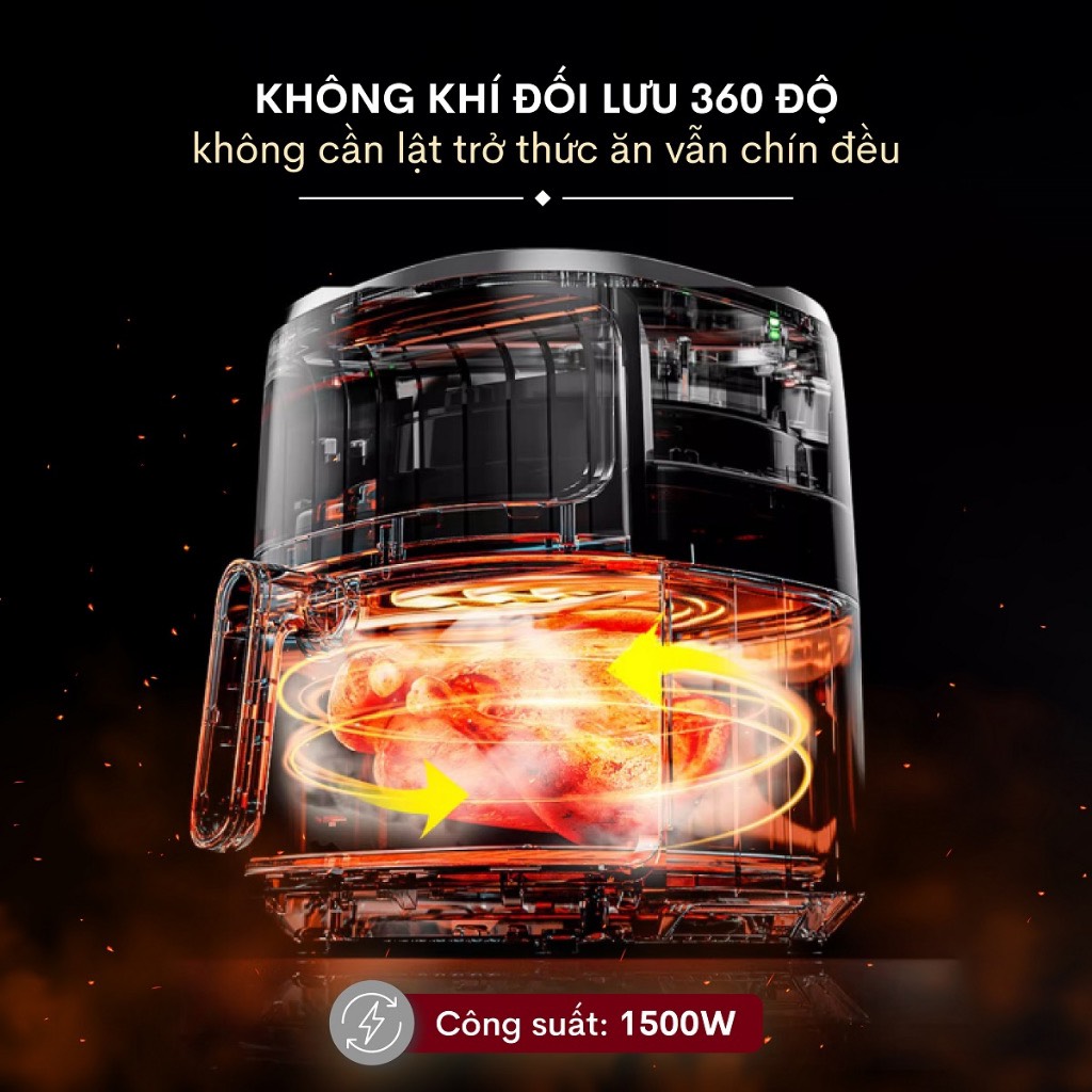 Ưu điểm nổi bật - Dung tích lớn 15 lít – thoải mái chiên nướng gà nguyên con, cá, sườn, bánh… phục vụ cả gia đình. - Công suất mạnh mẽ 1350W – làm chín