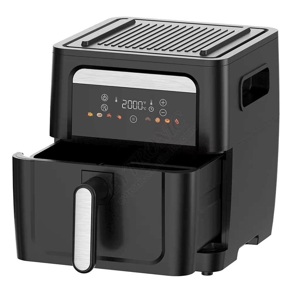 Nồi chiên không dầu đa chức năng, cảm ứng màn hình LED hiện đại – Nồi chiên không dầu Kalite Q6 được thiết kế với bảng điều khiển điện tử hiện đại được setup sẵn