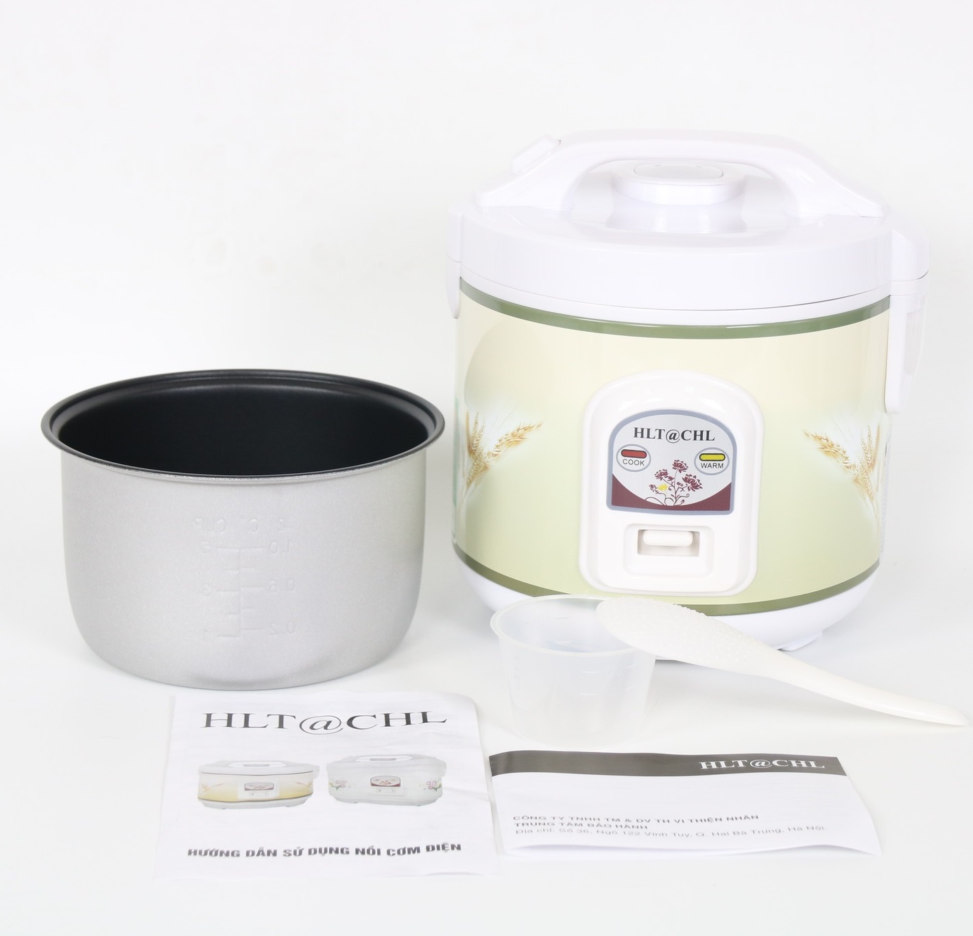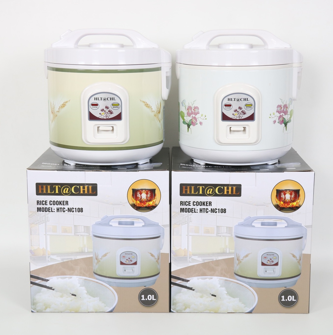 Nồi Cơm Điện Nắp Gài HLT@CHL NC128 - 1.2L có họa tiết đẹp mắt, nồi cơm có 2 màu trắng và vàng cùng họa tiết hoa. Nắp được thiết kế vòm cùng lỗ thoát hơi thông minh giúp hạn chế sự ngưng tụ hơi nước trên nắp, giúp cơm giữ được độ tơi xốp, thơm ngon tạo nên sự trọn vẹn cho bữa ăn. Nồi cơm với dây điện dạng rút tiện dụng tạo sự gọn gàng và nhanh chóng với thao tác khi sử dụng.