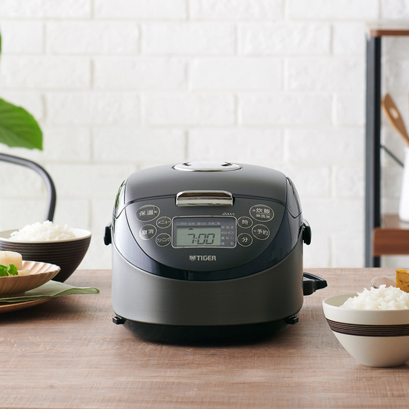 Nồi cơm điện tử cao tần hiệu Tiger 3 trong 1 với 12 chế độ nấu, lồng 5 lớp kim loại được phủ lớp men gốm “Cordierite Ceramic” chống dính bằng tia hồng ngoại dầy 2.5mm, công nghệ từ tính (IH) giúp hạt cơm thơm ngon & tiết kiệm điện cùng với thiết kế 3 vòng nhiệt giúp cơm chín nhanh hơn mà hạt cơm không bị nát và không bị khô trong quá trình giữ ấm cơm, với công nghệ nấu cơm siêu tốc “Rapid≤1 Cup” mới nhất được tích hợp để nấu chín 0.5 cốc gạo trong vòng 17 phút khi bạn cần nấu thêm cơm nhanh hay bạn chỉ nấu cho một khẩu phần ăn, màn hình LCD điều chỉnh thông minh, có chức năng báo không có lồng nồi, 2 chế độ hẹn giờ nấu, có quai xách, cốc đong gạo, muỗng xới cơm, các thực đơn nấu ăn trong sách hướng dẫn sử dụng kèm theo sản phẩm, chức năng giữ ấm cơm đến 24h, có 2 màu : màu trắng và màu đen.