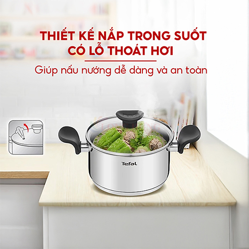 Nồi Inox Tefal Primary - 20cm x 3.0L Chất liệu: Inox cao cấp 18/10, chống gỉ sét, an toàn cho sức khỏe, bền bỉ theo thời gian. Kích thước: Đường kính 20cm, dung tích 3.0 lít – phù hợp nấu ăn cho gia đình nhỏ hoặc trung bình. Đáy nồi: Công nghệ đáy từ 3 lớp dày dặn, truyền nhiệt nhanh và đều, sử dụng tốt trên mọi loại bếp, kể cả bếp từ. Thiết kế: Thành nồi cao, miệng rót chống tràn tiện lợi. Tay cầm inox chắc chắn, dễ dàng thao tác. Vung kính cường lực trong suốt, chịu nhiệt tốt, giúp quan sát món ăn dễ dàng mà không cần mở nắp. Ưu điểm nổi bật: An toàn trong máy rửa chén. Chịu nhiệt cao, hạn chế biến dạng. Sử dụng đa dạng: luộc, nấu, hầm...   LƯU Ý KHI MUA HÀNG: Cảm ơn quý khách đã quan tâm đến sản phẩm bên shop, quý khách vui lòng dành ít thời gian đọc kĩ chính sách bảo hành đổi trả: Shop nhận đổi trả trong trường hợp hàng sai mẫu, size, màu do shop gửi. Bên shop chỉ giải quyết khiếu nại khi quý khách có video clip khi mở/nhận hàng. Bảo hành đối với sản phẩm chính hãng, quý khách trực tiếp mang sản phẩm bảo hành tới trung tâm bảo hành của hãng. Không nhận đổi trả khi sản phẩm bị hư hại do tác động ngoại lực từ người mua như móp, bể, trầy xước, nổ điện, rớt nước, rách tem bảo hành, không đầy đủ phụ kiện và hộp. Vì lượng hàng hoá nhiều shop không nhận đổi trả trong trường hợp khách không thích, không ưng màu, chất liệu; quý khách vui lòng đọc kĩ mô tả và xem hình ảnh cụ thể; nếu cần hãy chat với shop để được tư vấn.