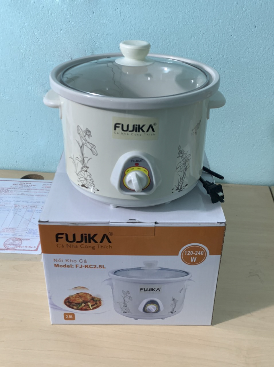 Tên sản phẩm: Nồi Kho Cá Thịt,Nấu Chậm,Nấu Cháo,Nồi Tiềm 2.5L Fujika KC25 Màu Vàng Hoạt Tiết-Hàng chính hãng